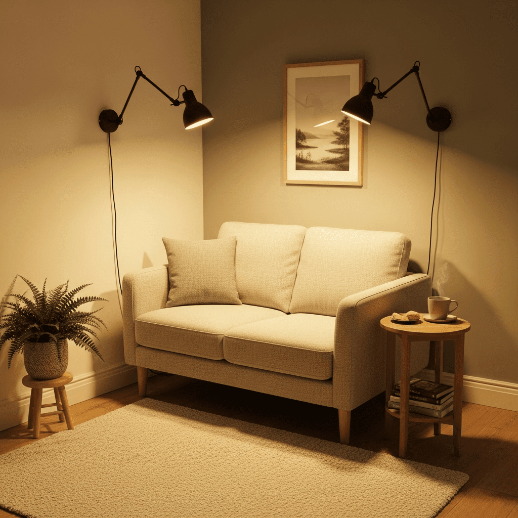 Eliminate floor lamps that take up valuable legroom by installing swing-arm wall sconces. These provide adjustable task lighting for reading while keeping your side tables and floors completely clear.