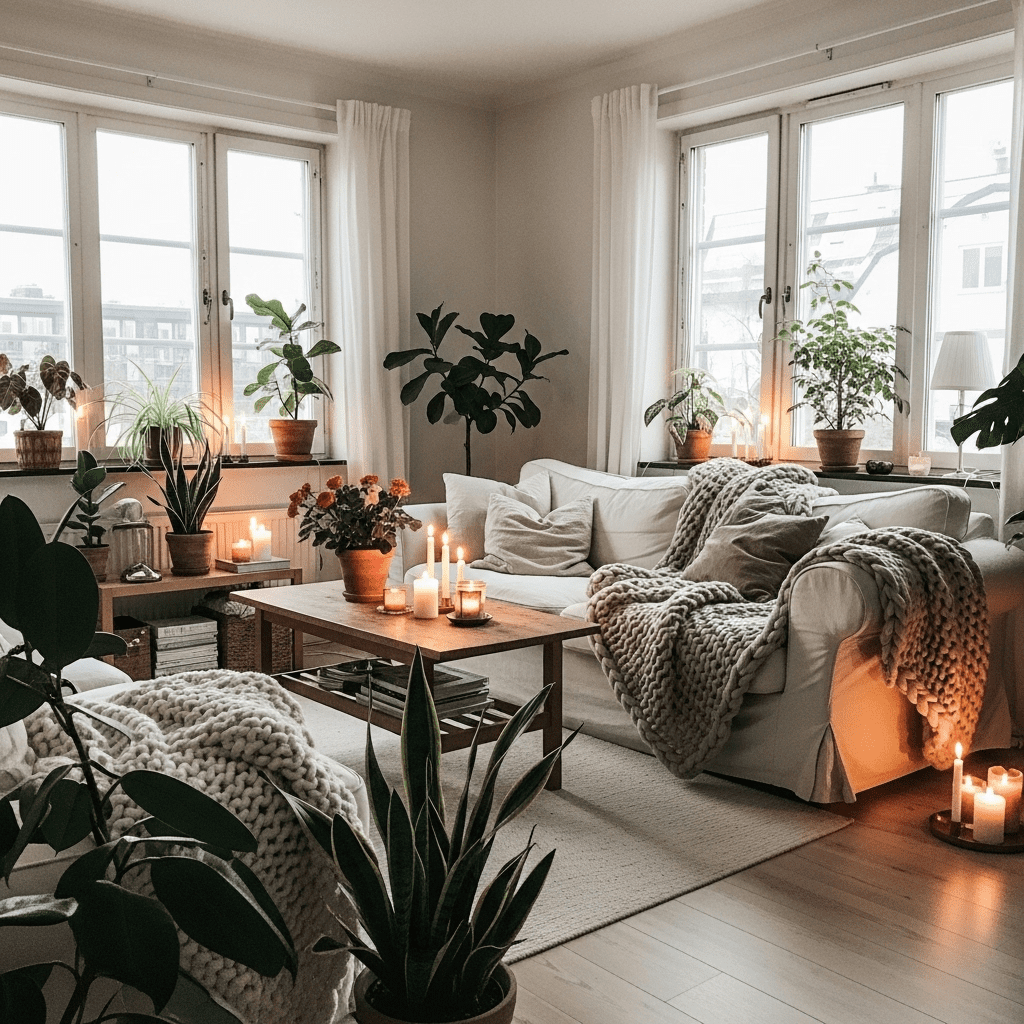 Embrace the Danish concept of hygge with a minimalist Scandinavian design featuring warm wood tones, plush textiles, and candlelight. Layer soft throws over a neutral sofa, add sheepskin rugs, and incorporate natural materials like wool and linen. The key is creating a space that feels uncluttered yet incredibly inviting.