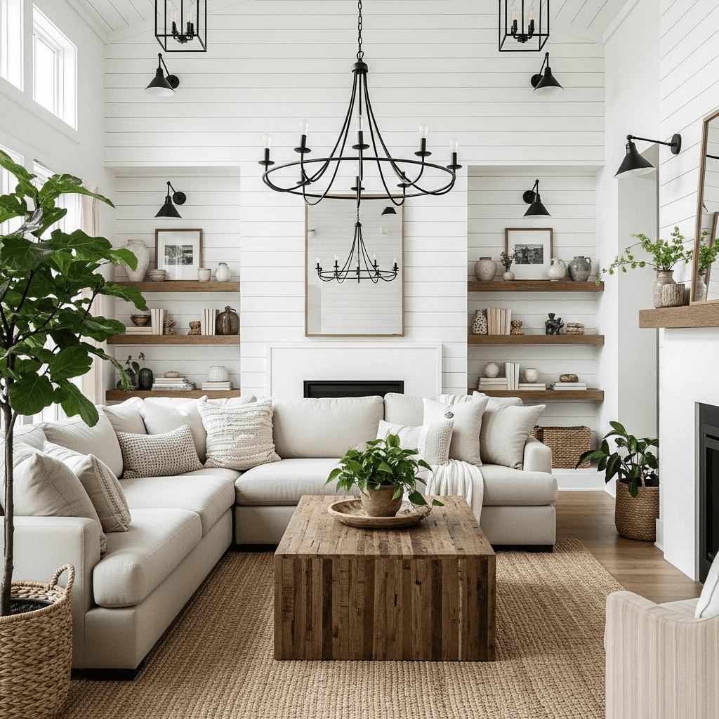 Combine contemporary comfort with farmhouse character through shiplap walls, vintage-inspired furniture, and a neutral color palette. Add warmth with brass fixtures, woven baskets, and plenty of soft textiles. This timeless style balances old and new perfectly.