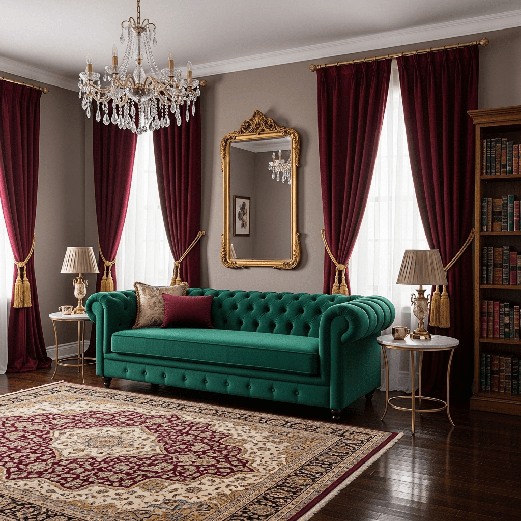 Create drama and warmth with rich jewel tones like emerald, sapphire, or burgundy. Velvet upholstery, metallic accents, and layered lighting make this sophisticated space feel both luxurious and welcoming. Deep colors naturally create an intimate, cozy atmosphere.
