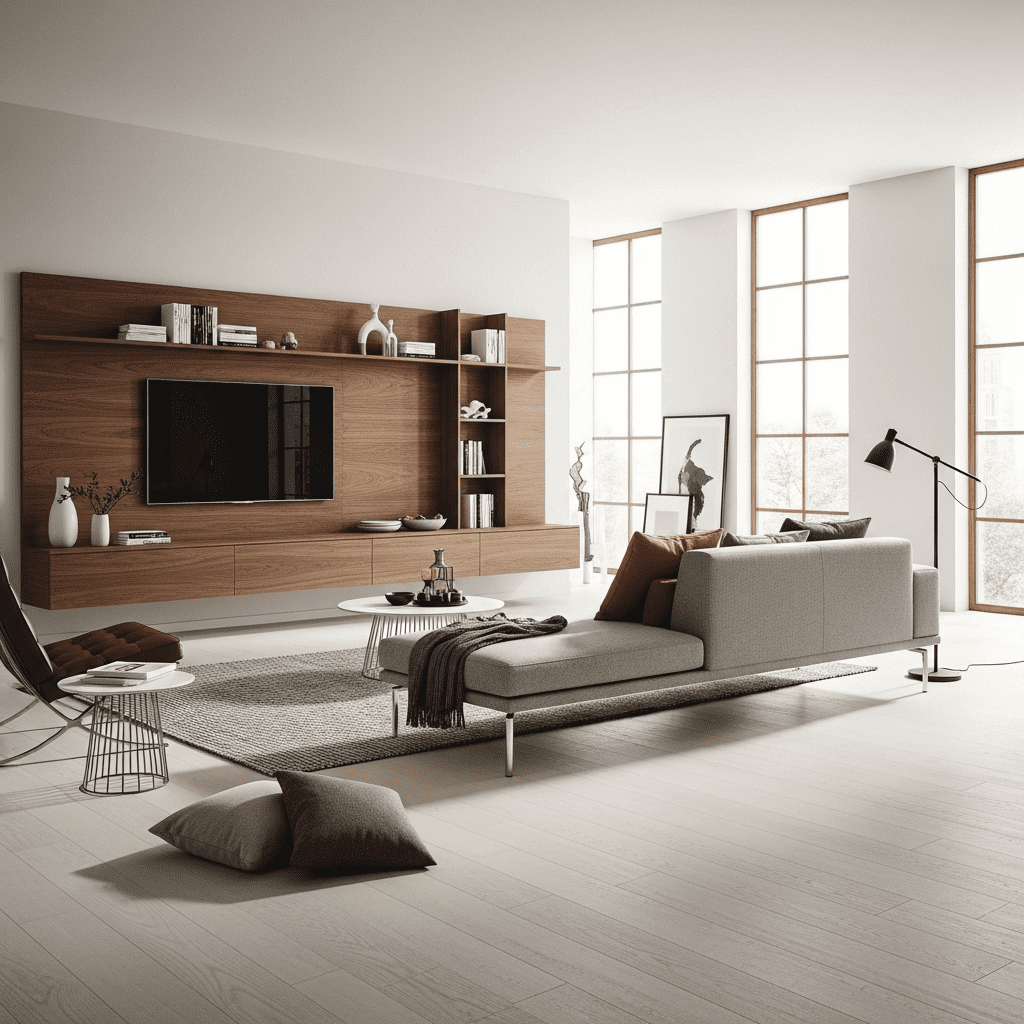 Using wall-mounted media consoles and furniture with slender “invisible” legs to create a sense of weightlessness and maximize the visible floor area.