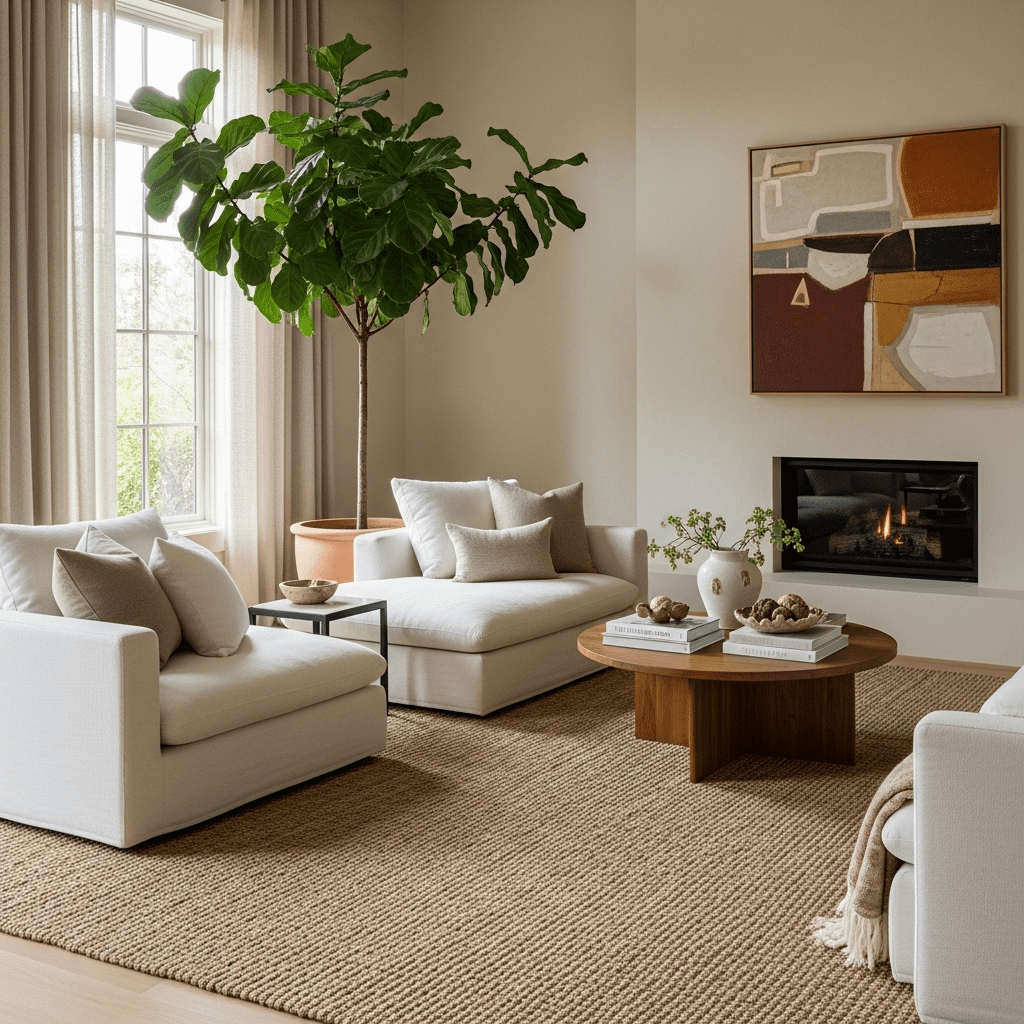 Integrating nature through “living walls” or oversized indoor trees, paired with organic materials like rattan, jute, and unpolished stone.