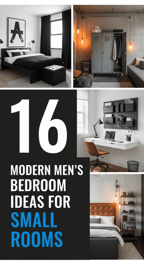 Modern men’s bedroom ideas for small rooms center on “masculine minimalism,” where high-contrast color palettes and industrial materials meet streamlined, multi-functional furniture. In a compact footprint, the design strategy focuses on sharp lines and “heavy” textures—like leather, concrete, and dark wood—but balances them with open floor plans and smart lighting to avoid a cramped feel. By prioritizing wall-mounted tech, hidden storage, and a “low-profile” layout, you can create a sophisticated, high-performance sanctuary that feels both expansive and grounded. Here are 16 ideas to master a modern look for a small male-oriented bedroom.
