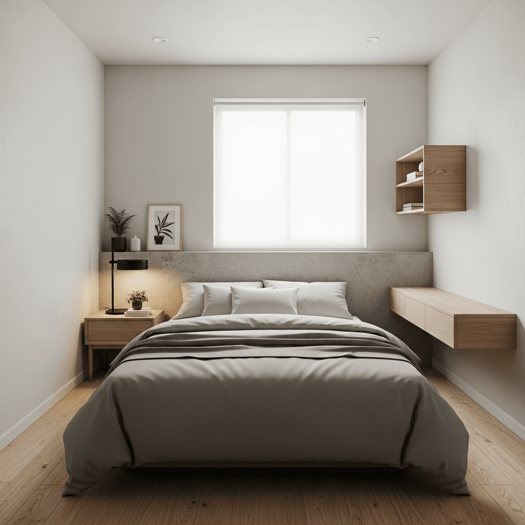 Modern bedroom ideas for small rooms men swap traditional headboards for a custom-built concrete or stone-look ledge. This provides a rugged, industrial surface for a phone or watch while saving the precious inches a standard frame would consume.