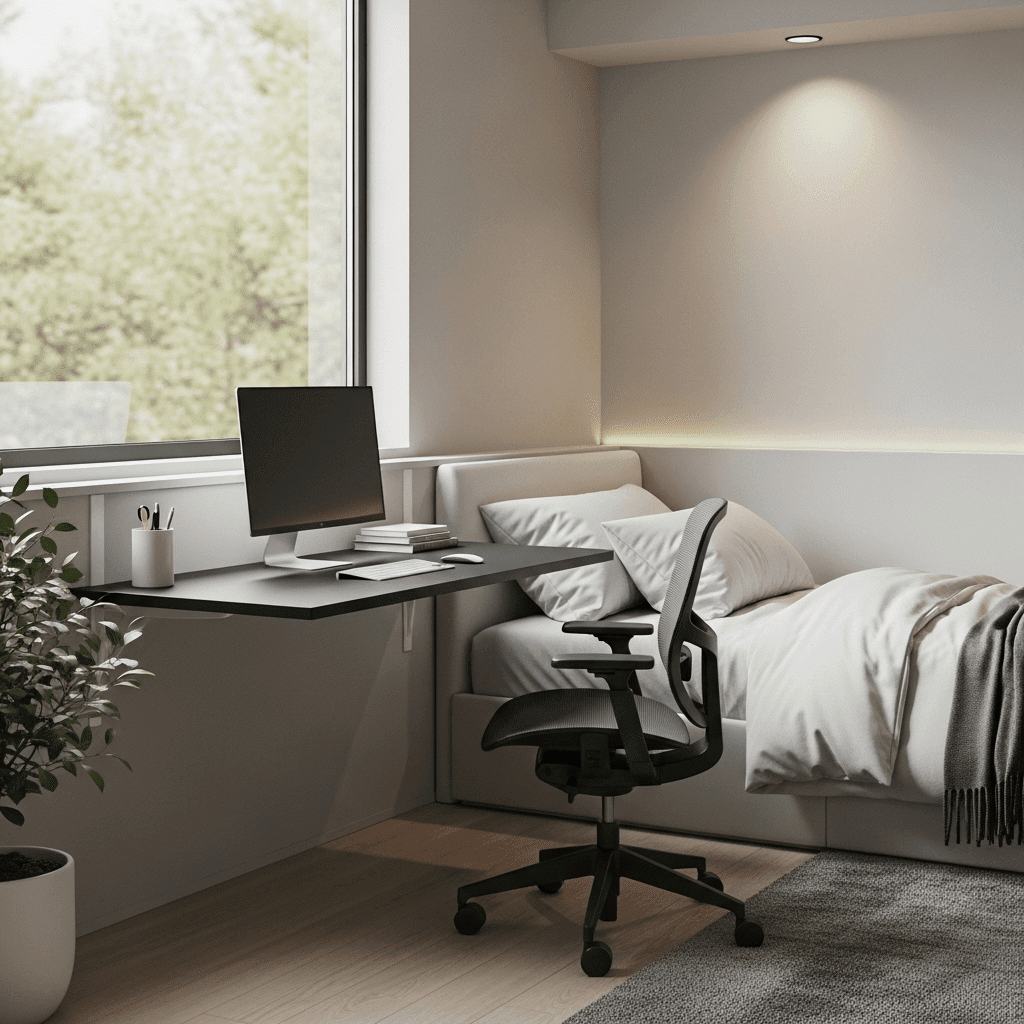 Modern bedroom ideas for small rooms men incorporate a floating desk that can fold or swivel against the wall. This allows for a dedicated gaming or work zone that disappears when it’s time to sleep, keeping the floor area clear.
