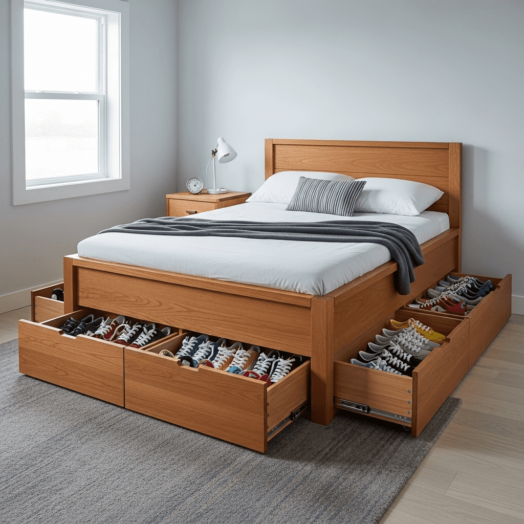 Modern bedroom ideas for small rooms men utilize the space beneath the bed for custom-fitted drawers. This is the ideal spot for sneaker collections or off-season gear, keeping the main room entirely clear of piles.