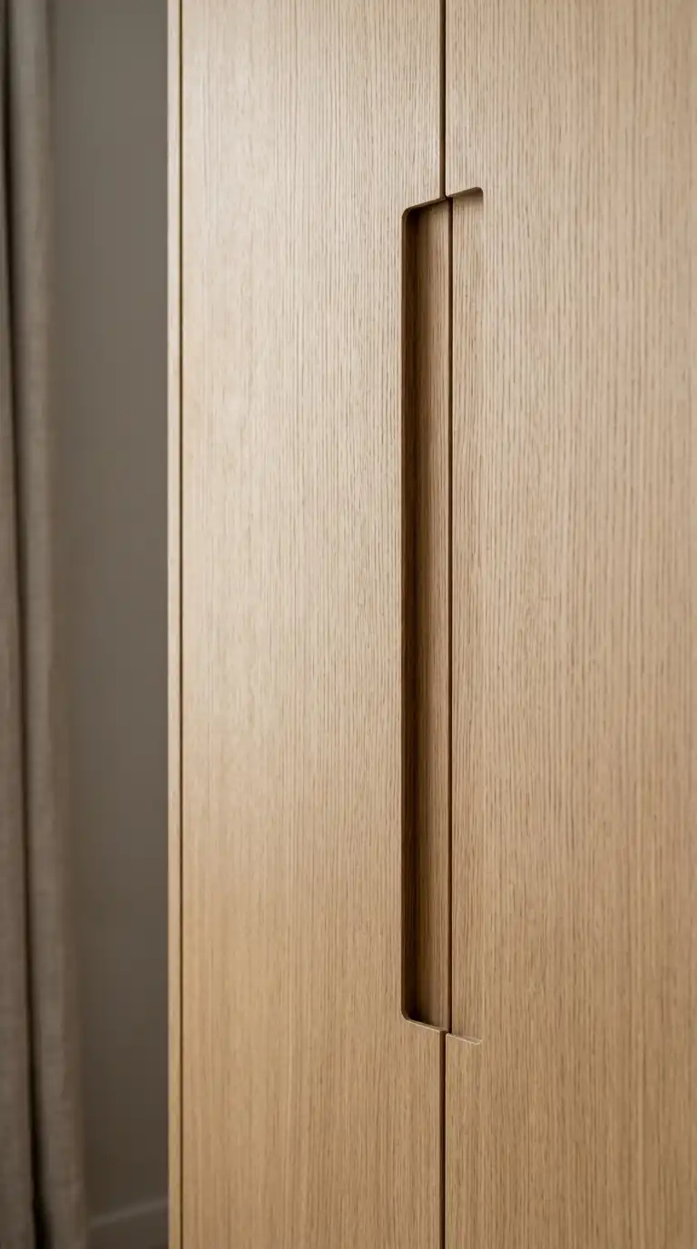 Recessed handles are built into the door itself, creating a flush surface that is both sleek and functional. They are ideal for minimalist and modern wardrobes where clean lines are paramount. The handle can be a simple groove, a channel, or a discreet finger pull.