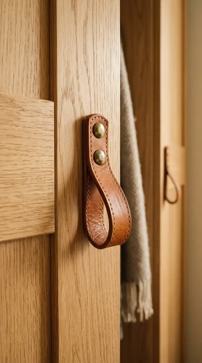 Leather pulls add a natural, organic touch to wardrobe doors. The soft texture contrasts beautifully with smooth surfaces, creating a handcrafted, warm feel. Leather pulls work well in Scandinavian, bohemian, and modern farmhouse interiors.