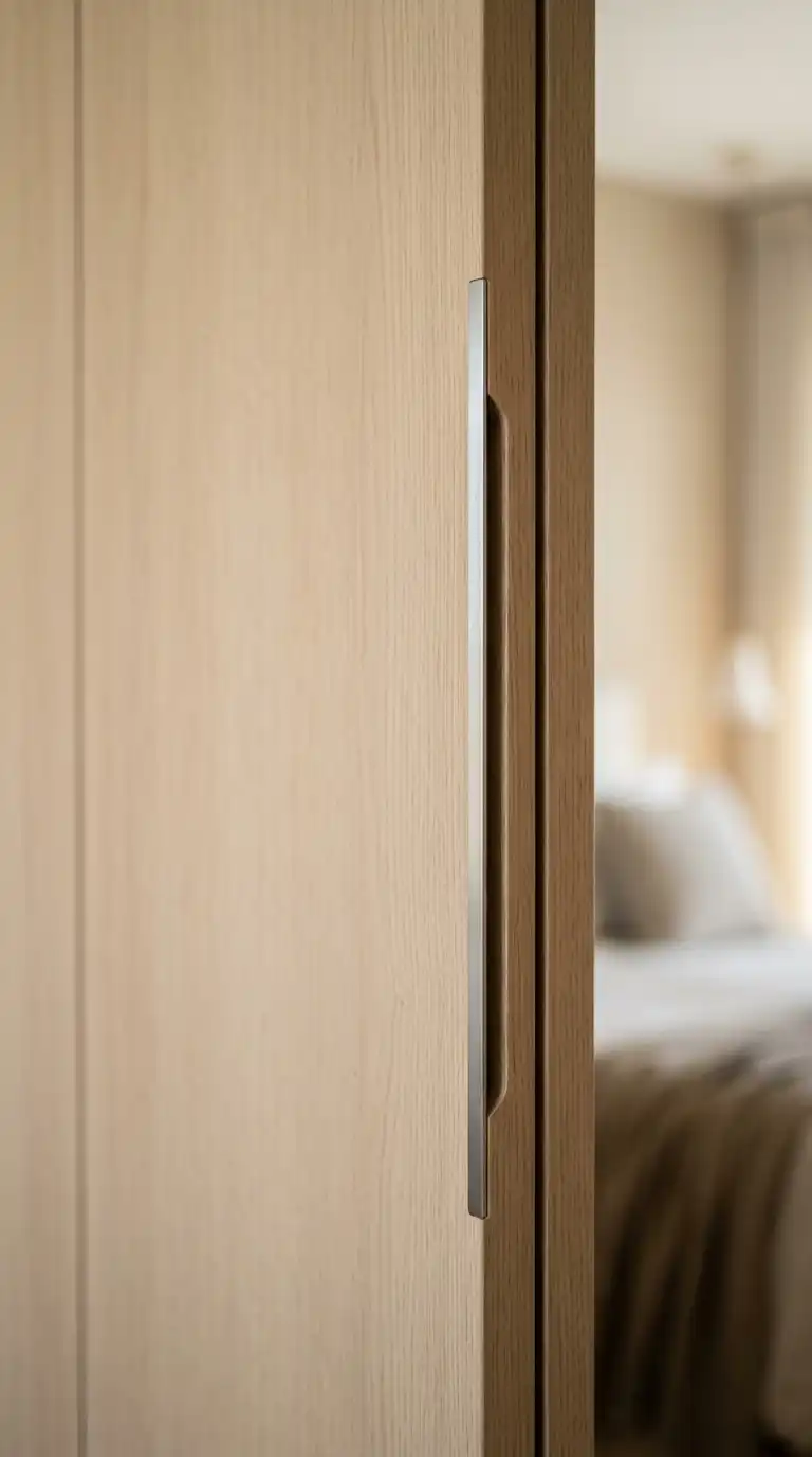 Long vertical pulls draw the eye upward, making doors appear taller and more elegant. They are especially effective on full-height wardrobe doors. Choose slim profiles in metal finishes for a modern look.