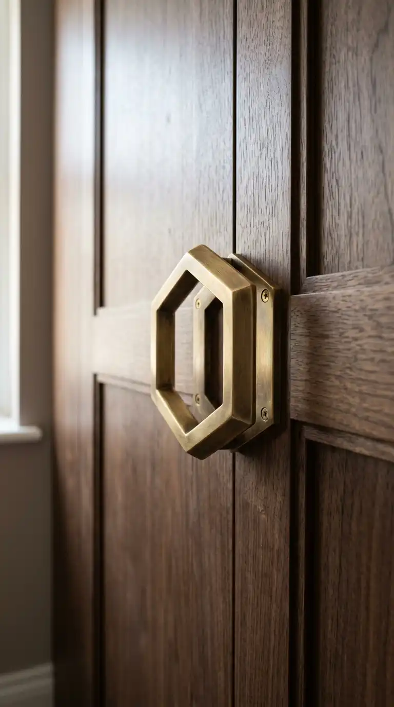 Geometric handles add a sculptural element to wardrobe doors. Shapes like hexagons, triangles, or circles create visual interest and become a design feature themselves. Choose finishes that complement your overall palette.
