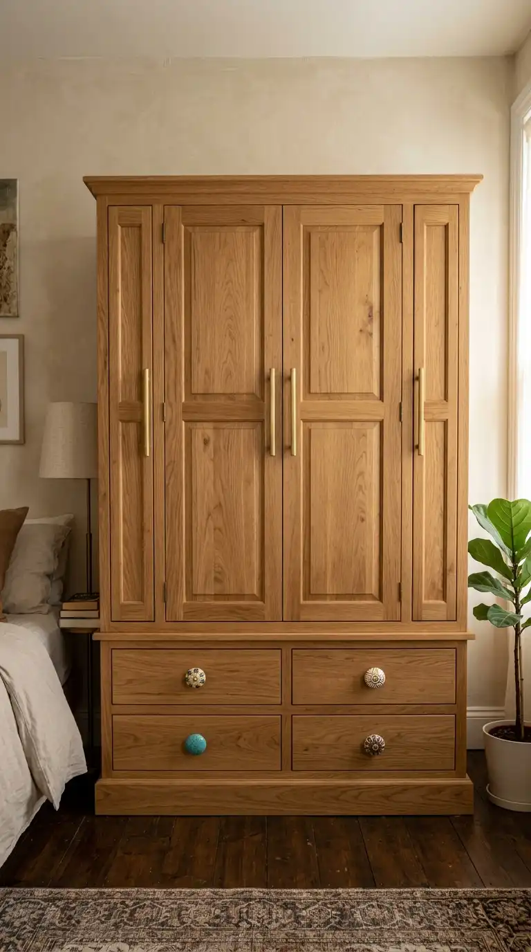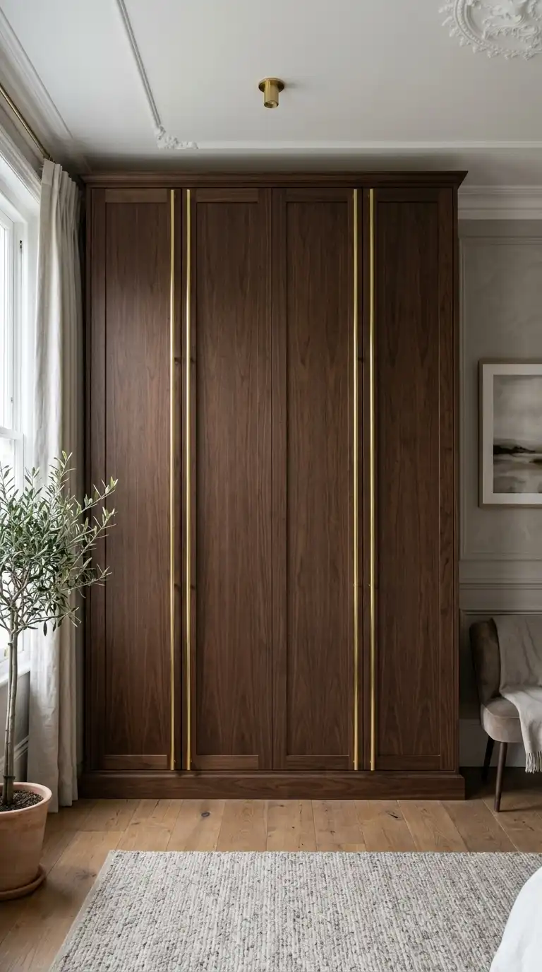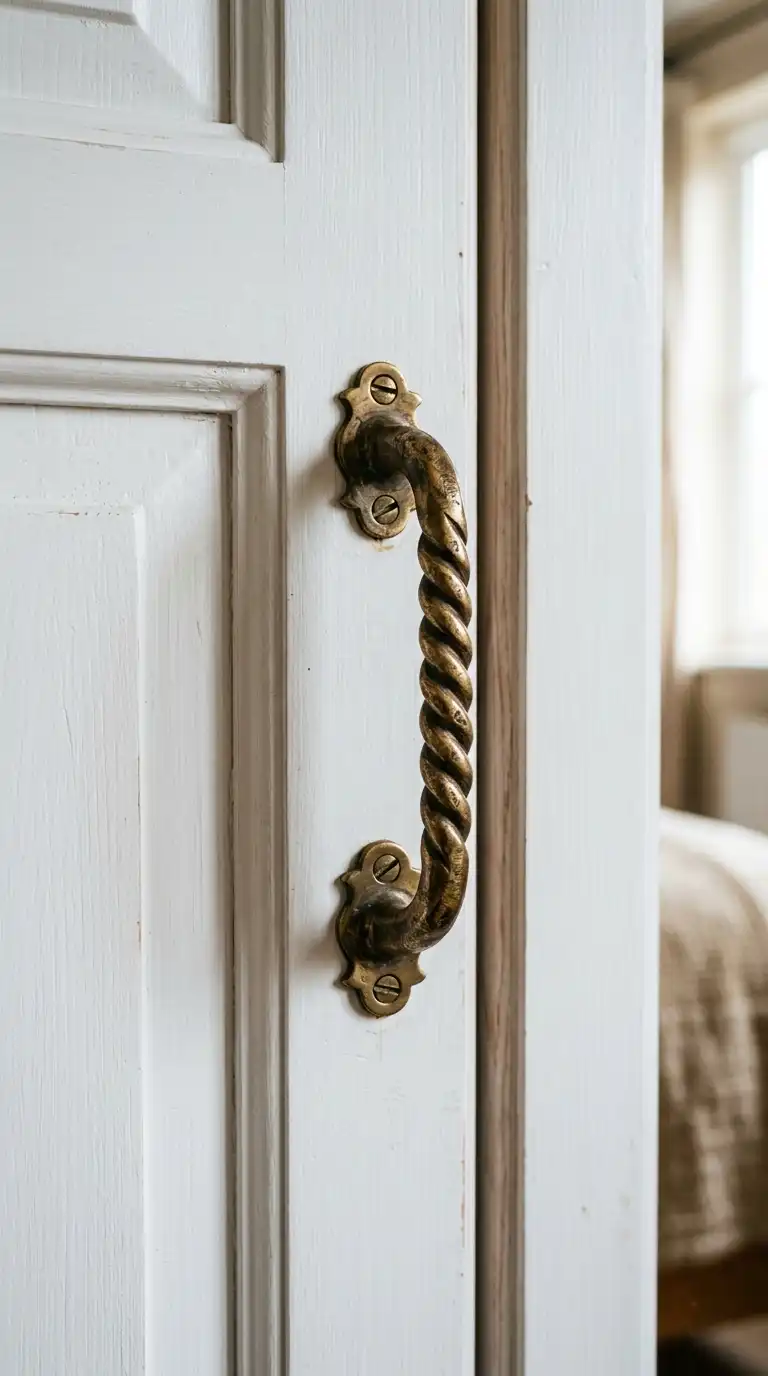Vintage or antique handles add character and a sense of history to wardrobe doors. Look for salvaged hardware or reproductions in aged brass, iron, or porcelain. This style suits farmhouse, traditional, and eclectic interiors.