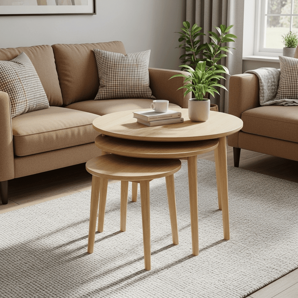 Furniture ideas for small living room functionality include sets of nesting tables. These can be pulled out when guests need a place for their coffee and tucked back into a single footprint to clear the floor for daily movement.