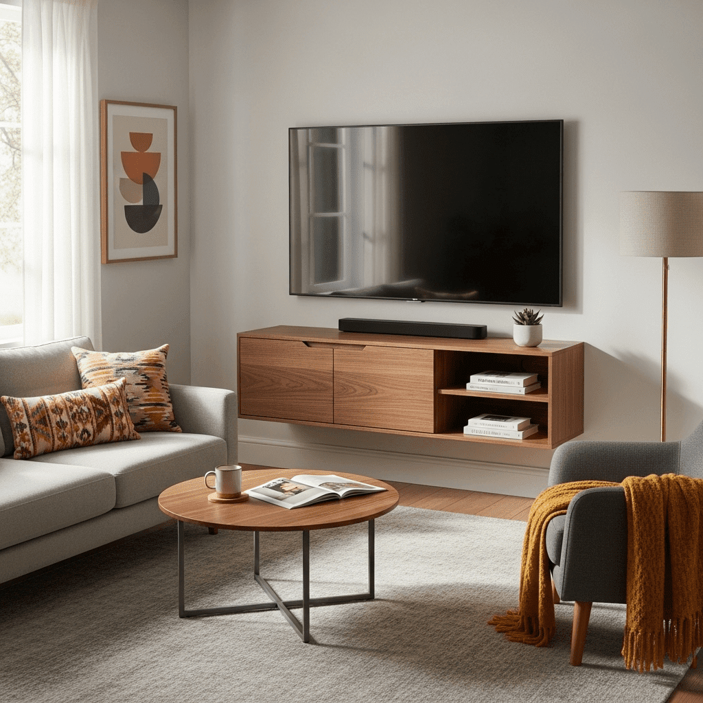 Furniture ideas for small living room storage prioritize the walls. By mounting a media console directly to the wall, you leave the floor space clear, which creates a streamlined and modern look.