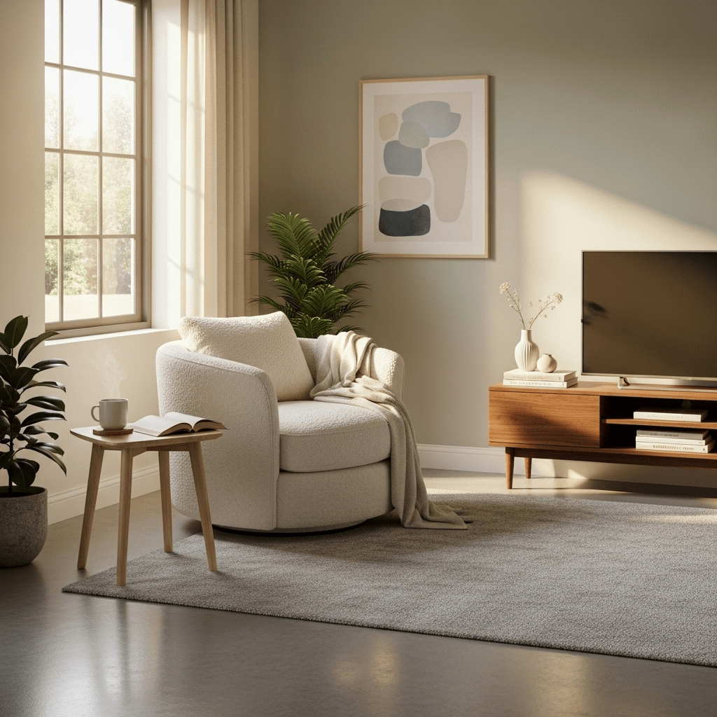 Furniture ideas for small living room layouts often include swivel chairs. These allow the sitter to face the TV or turn toward a conversation in an open-concept dining area without having to move the furniture.