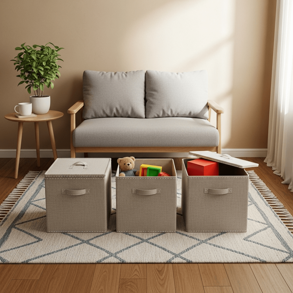 Furniture ideas for small living room flexibility incorporate upholstered cubes. These can be used as individual seats, pushed together to form a coffee table, or moved aside when you need space for yoga or activities.