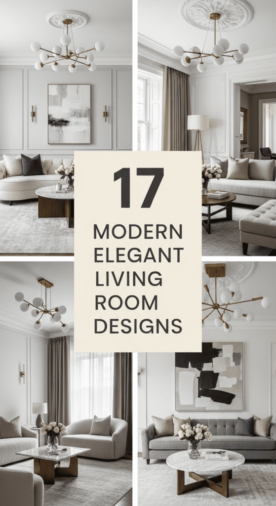 Modern elegant living room designs are defined by “quiet luxury”—the ability to look expensive and curated without being loud or cluttered. This aesthetic relies on a foundation of high-quality materials (like marble, velvet, and walnut), a sophisticated neutral palette, and architectural lighting. The goal is to create a space that feels curated like a gallery but remains comfortable enough for daily life. From the shimmer of metallic accents to the softness of organic curves, these 17 designs showcase how to master the art of refined modern living.