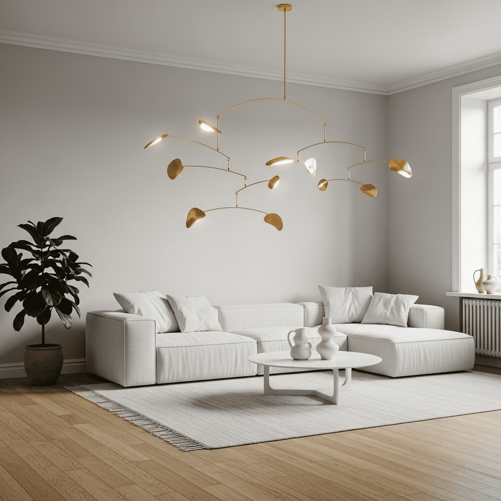 Using oversized, avant-garde light fixtures—like a mobile chandelier or a massive paper lantern—as the primary “art” in a minimalist room.