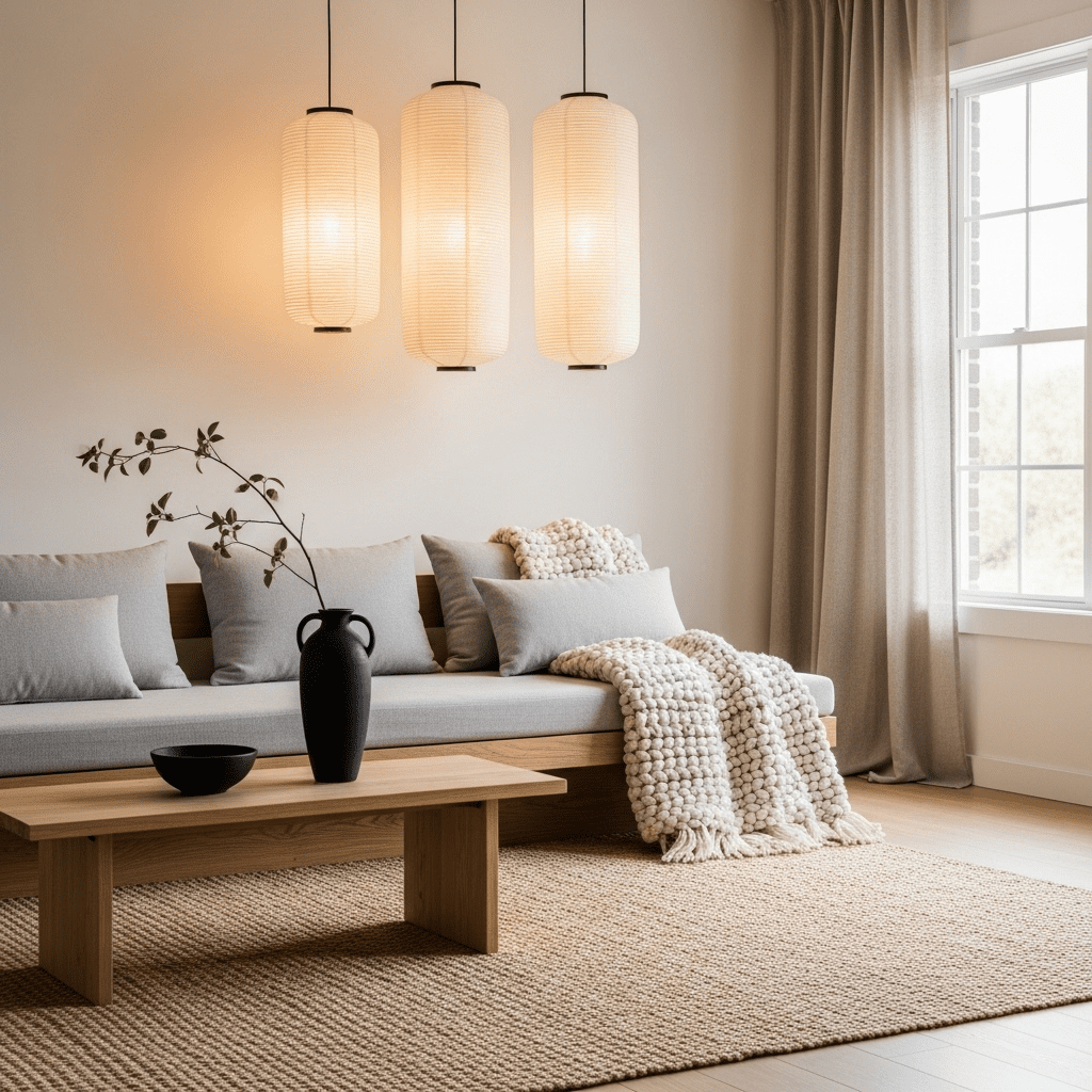 Combining the sleekness of modern design with the warmth of Japanese aesthetics—think low furniture, light woods, and paper light shades.