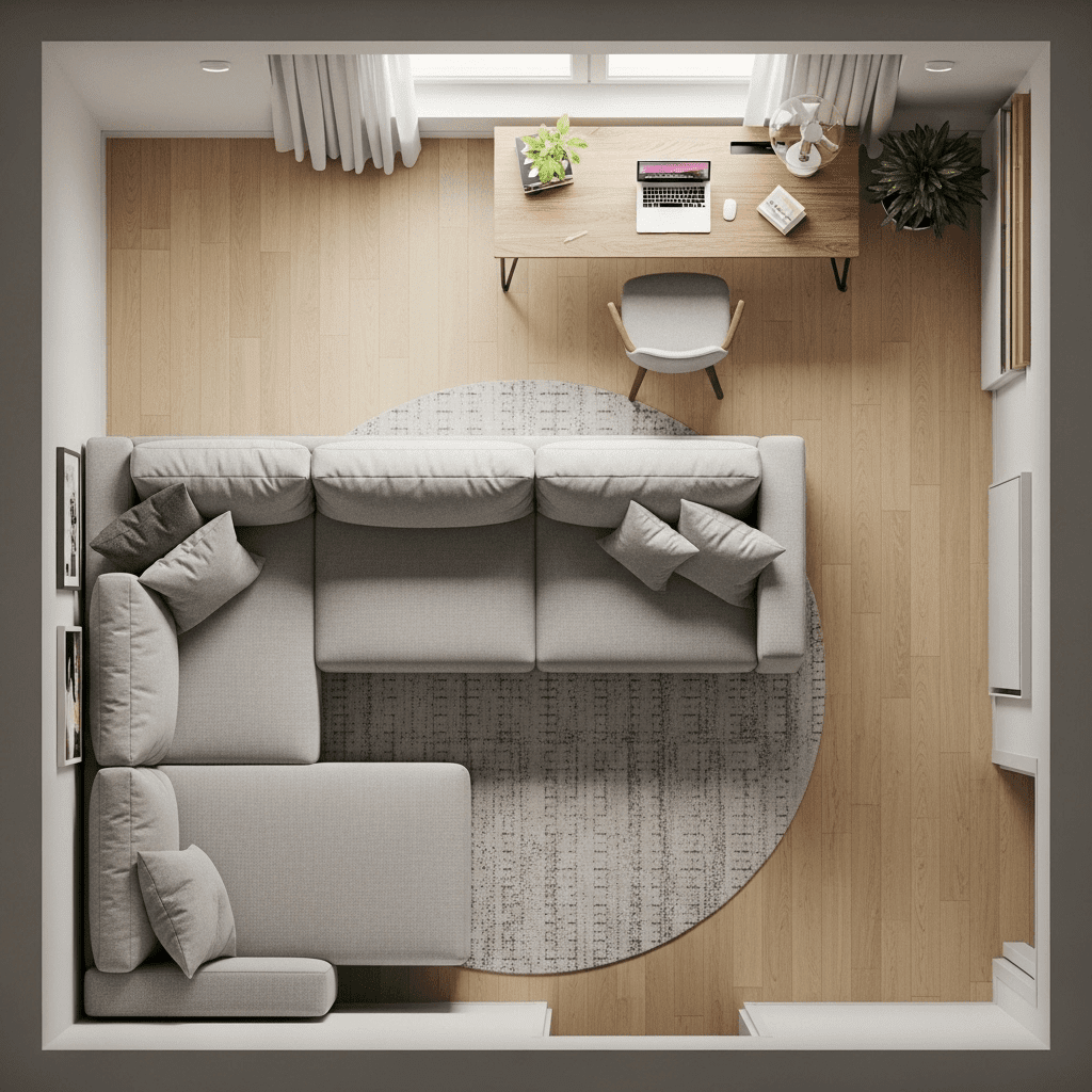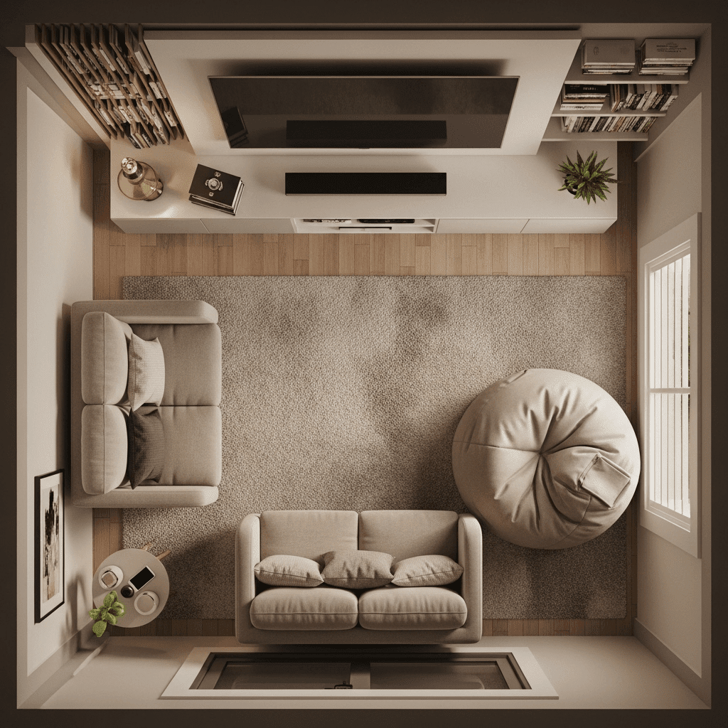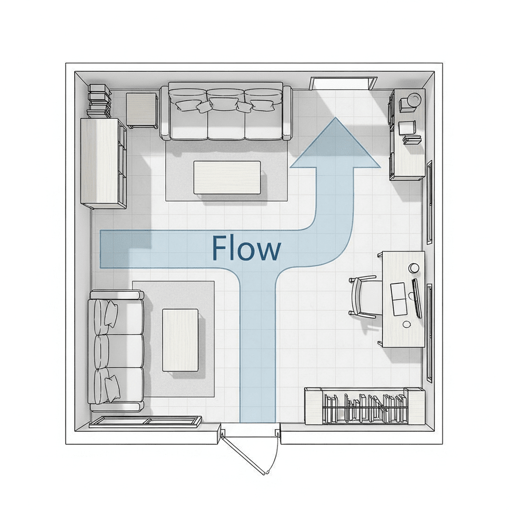 Mastering a small living room layout is about being intentional with your paths. By looking at your room from a “top-view plan” perspective, you can easily spot where traffic gets blocked or where space is being wasted. Prioritize furniture that offers multiple uses and always keep your main walkways clear to maintain a sense of freedom and comfort.
