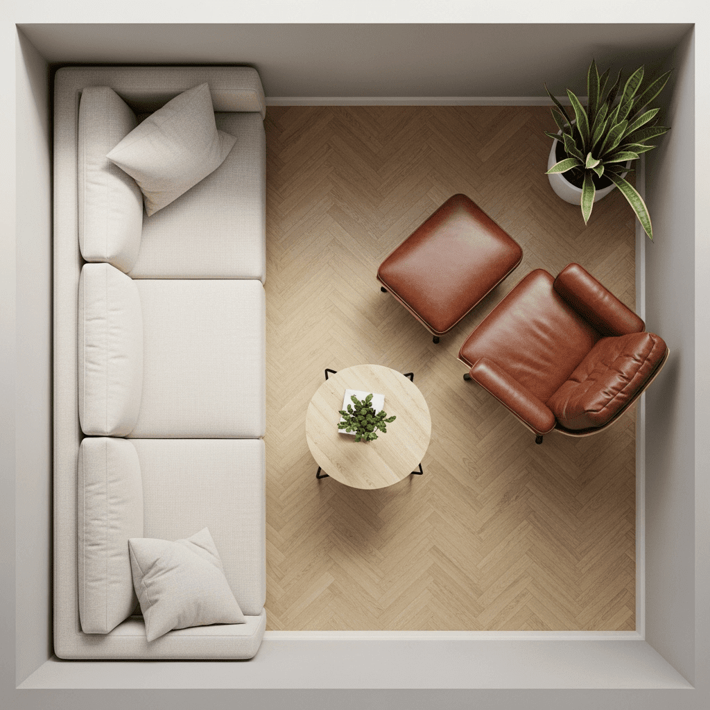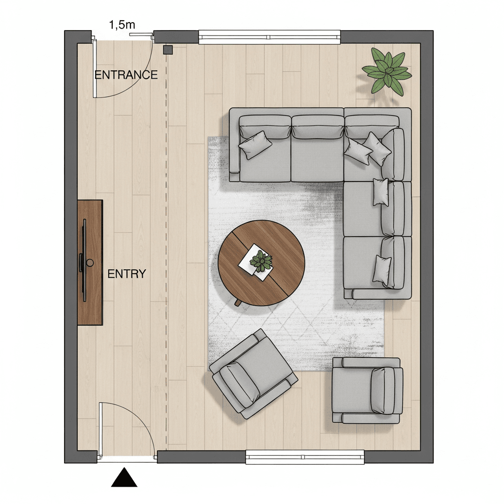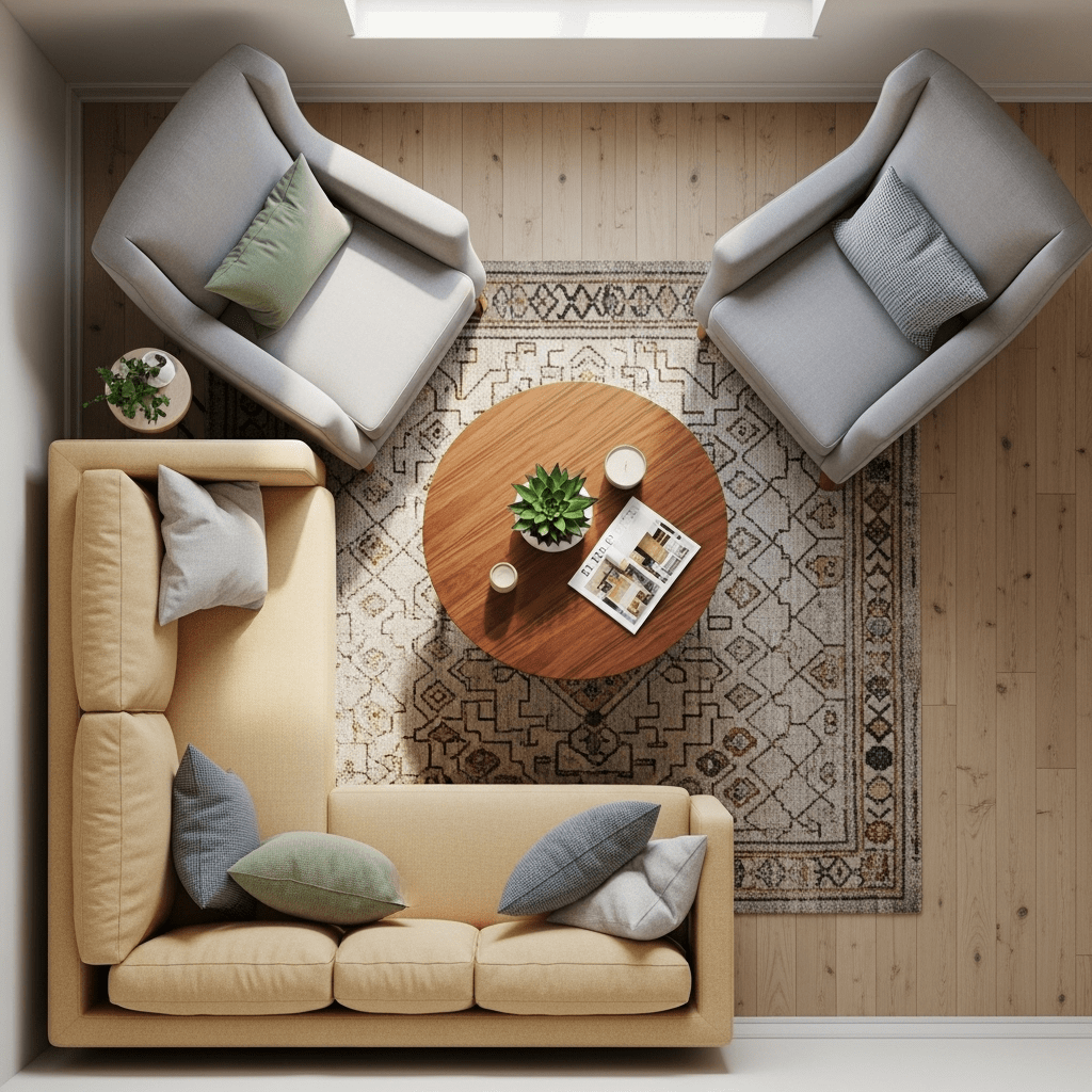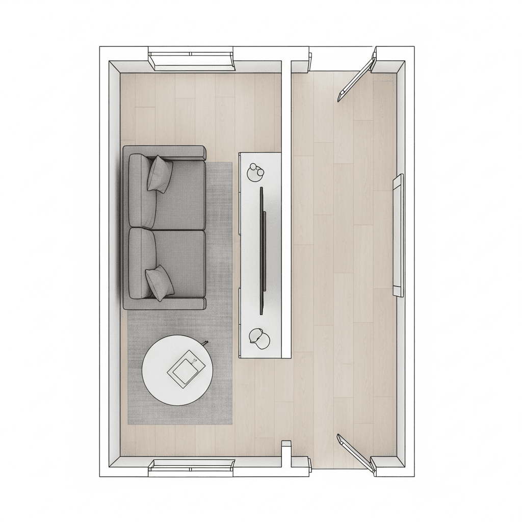 Mastering a small living room layout is about being intentional with your paths. By looking at your room from a “top-view plan” perspective, you can easily spot where traffic gets blocked or where space is being wasted. Prioritize furniture that offers multiple uses and always keep your main walkways clear to maintain a sense of freedom and comfort.