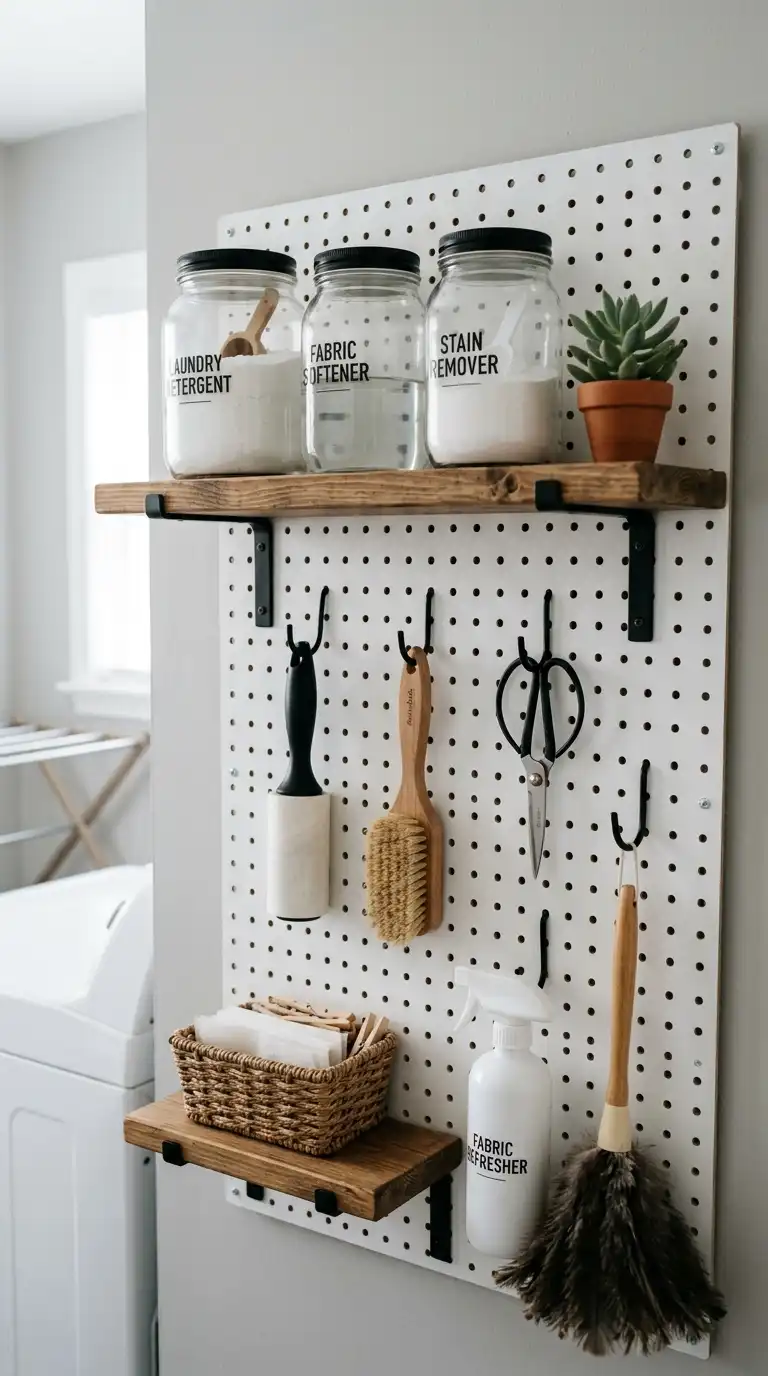 A pegboard is a versatile storage solution. Install a large pegboard on one wall. Add pegboard shelves, hooks, and baskets. Use the shelves for supplies and the hooks for hanging tools like a lint roller or stain brush. Paint the pegboard a fun color for personality.