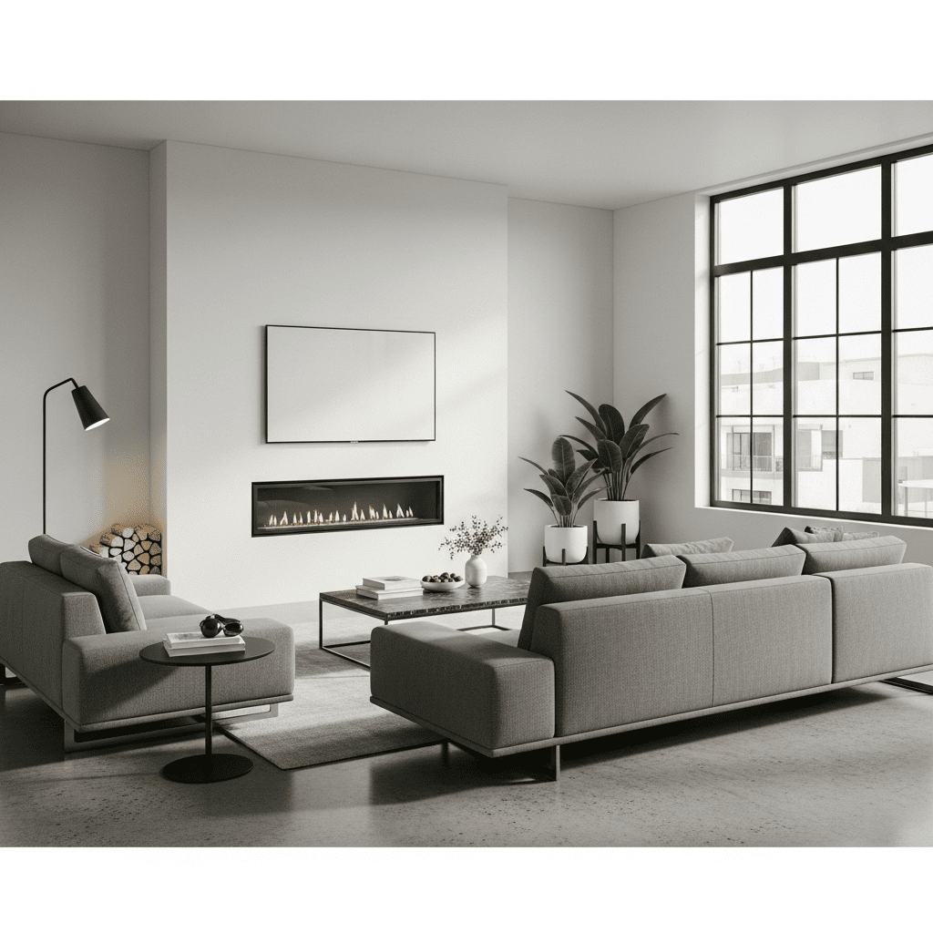 A sleek, wall-mounted linear fireplace creates contemporary drama. The horizontal design works beautifully beneath a mounted TV or large piece of art. Keep the surrounding wall clean and minimal for maximum impact.