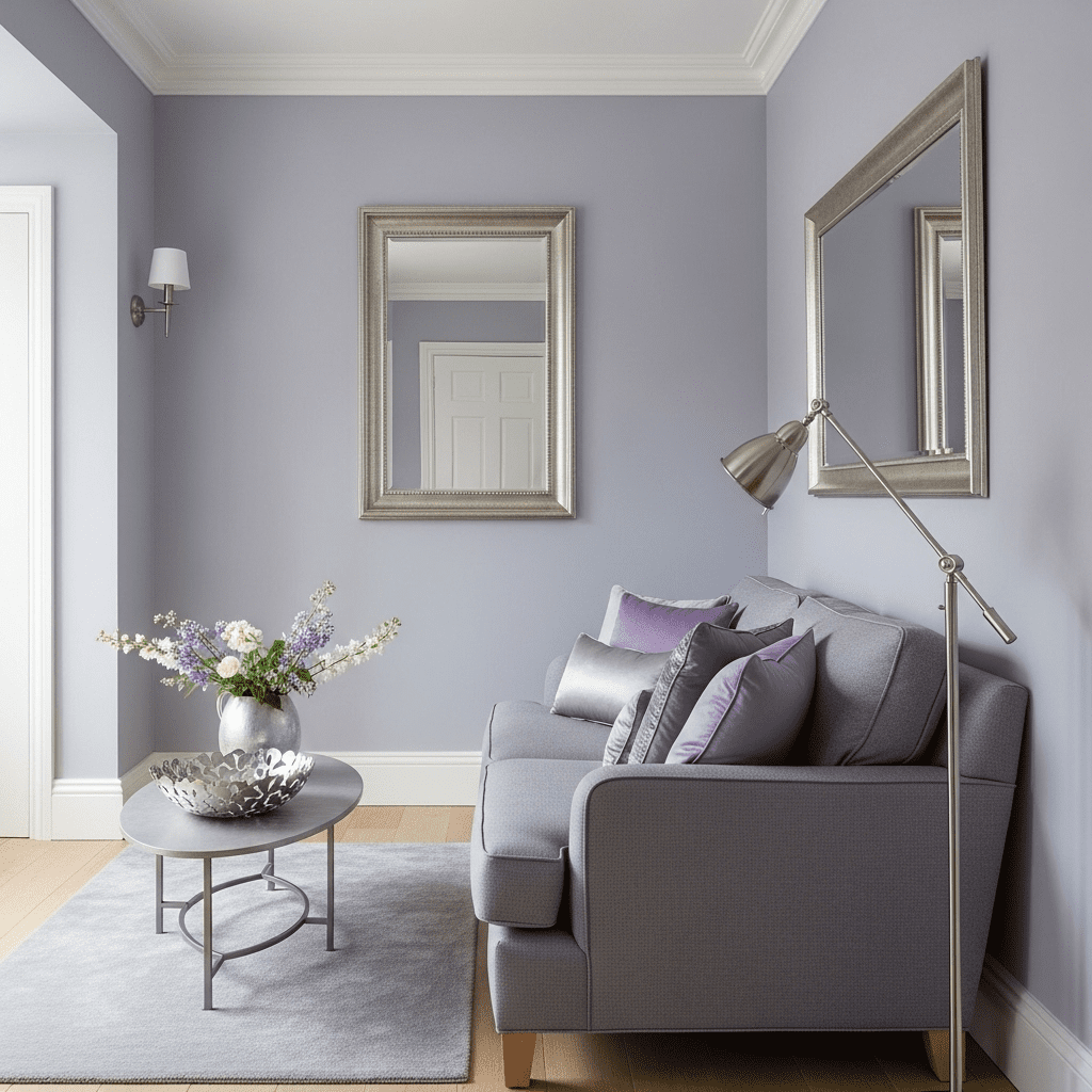 Use soft purple-grays like “Misty Lilac” with gray undertones. Pair with neutral furniture and silver accents. The unexpected color creates serene, memorable atmosphere.