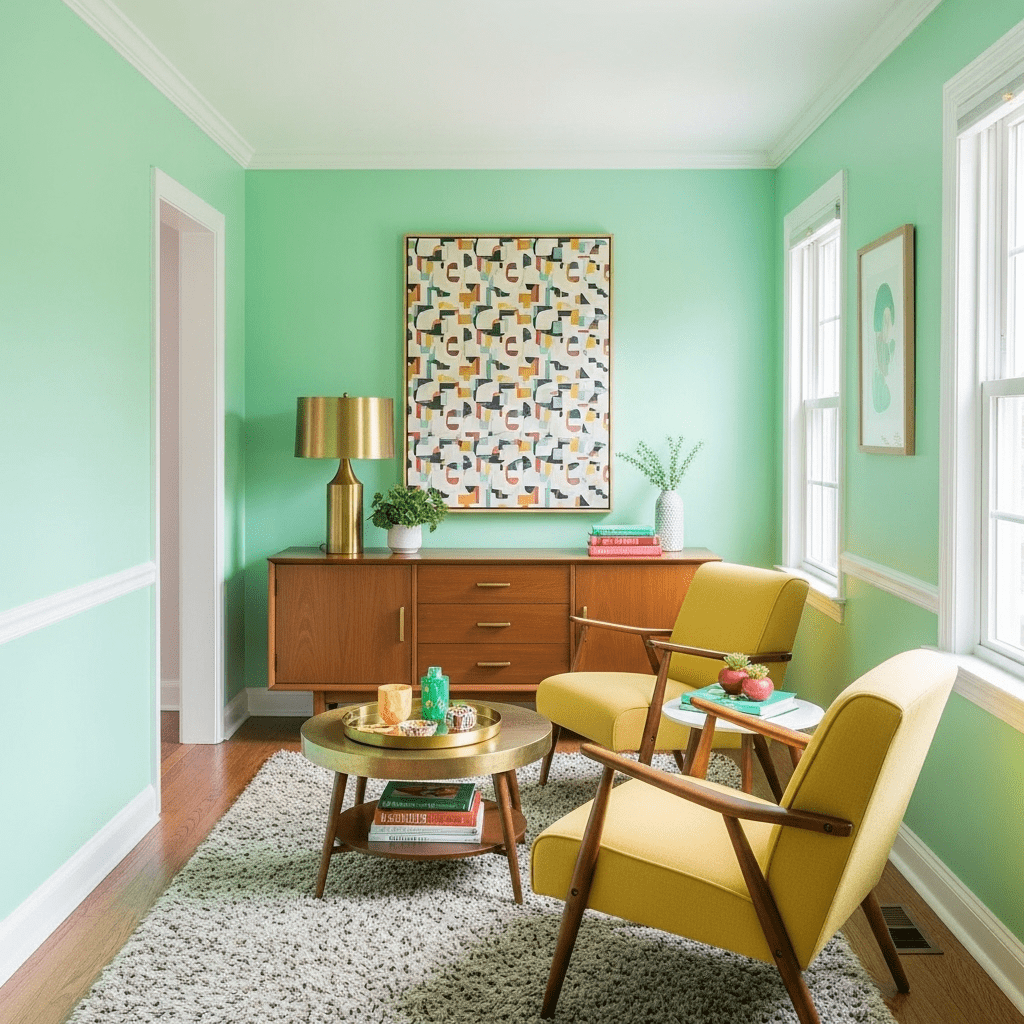 Use fresh mint green for vintage-modern cheerfulness with personality.