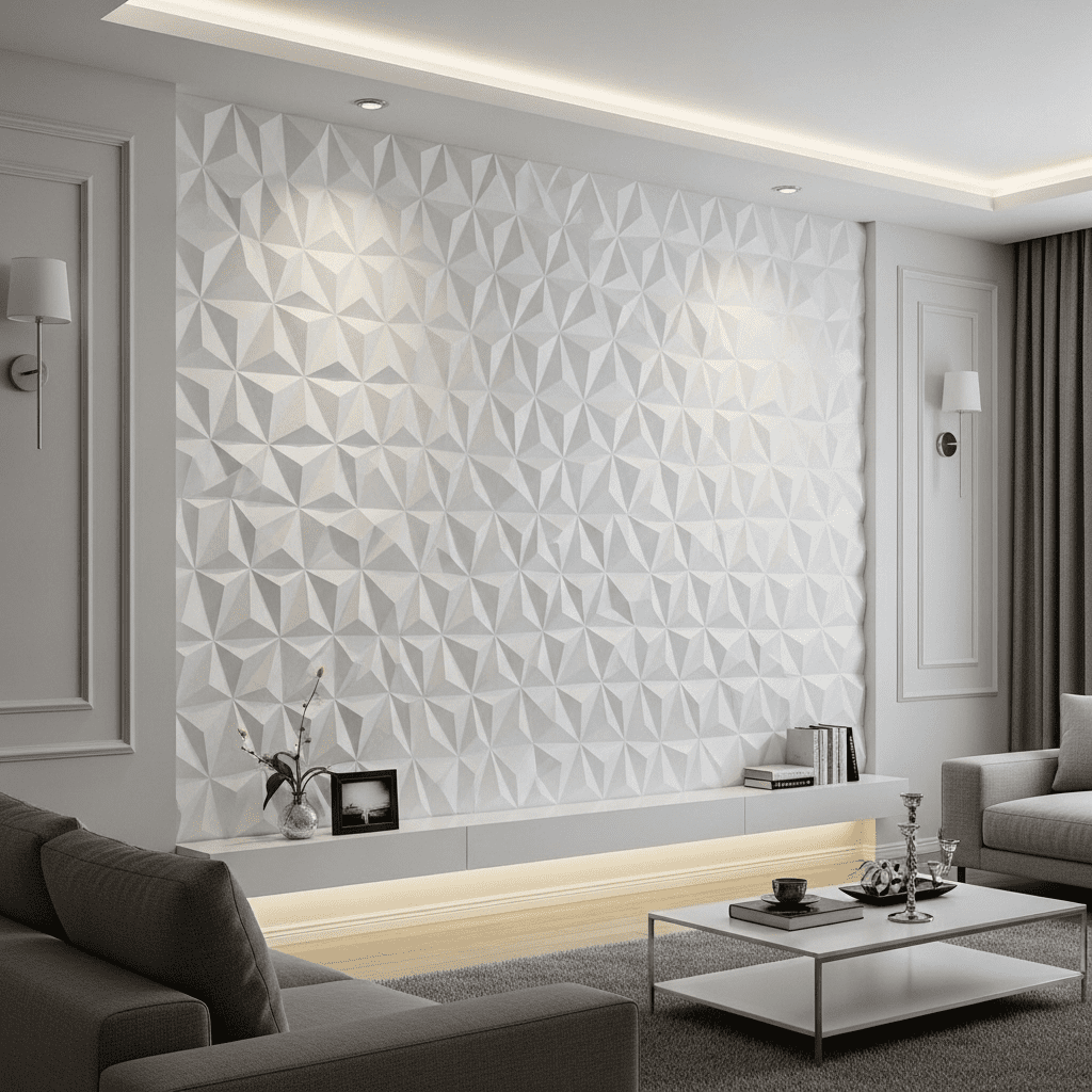 3D Textured Panels: Geometric or organic patterns adding depth and shadow play to accent walls.