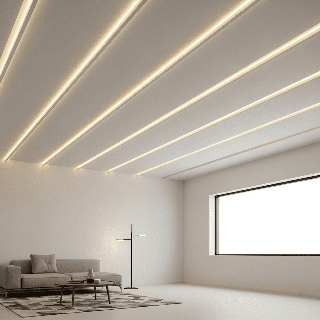 Minimalist Linear: Simple straight lines, recessed channels, and geometric simplicity for understated elegance.