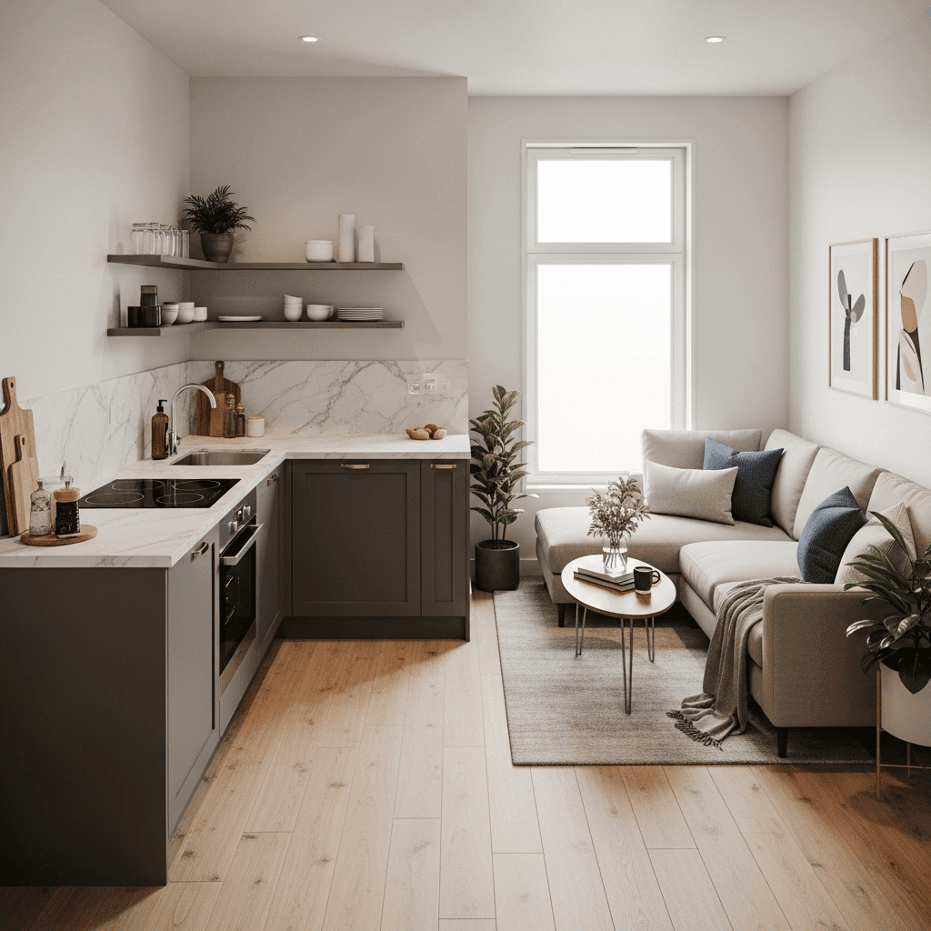 Mastering a small living room and kitchen combo is about the balance of utility and aesthetics. By focusing on consistent materials and “floating” elements like shelves and carts, you ensure the space remains functional without becoming cluttered. Keep your walkways clear and prioritize hidden storage to maintain a sense of calm in your multi-functional home.