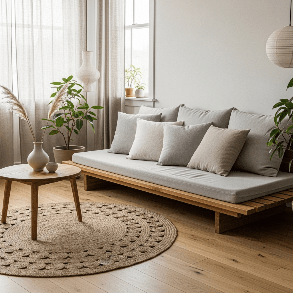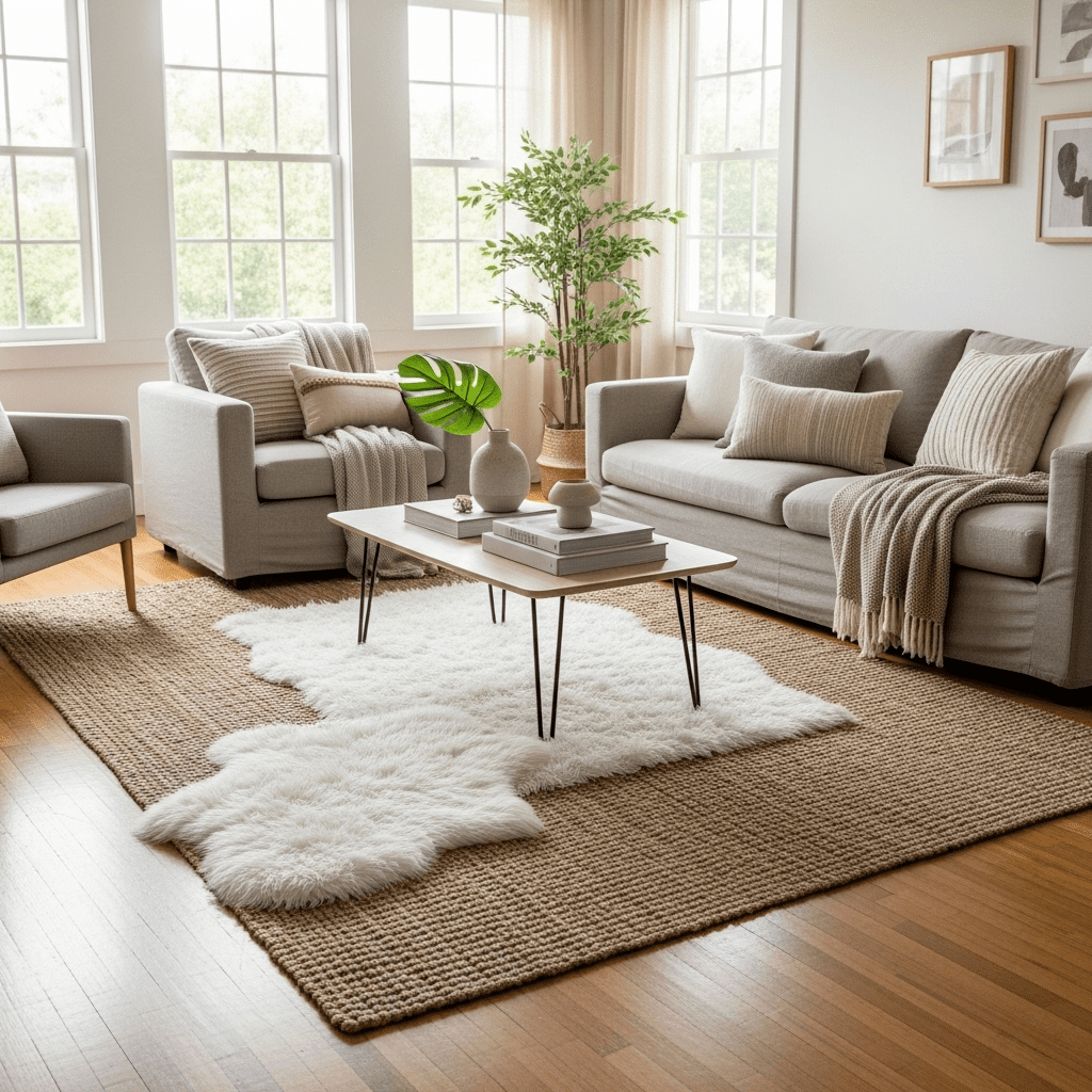 Using seagrass, sisal, or jute rugs that mimic the texture and scent of traditional Japanese tatami mats, layered under a soft wool rug for comfort.