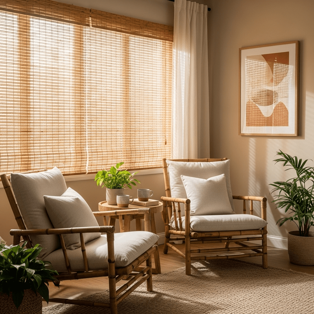 Pairing sustainable bamboo furniture with heavy, unbleached linen upholstery for a tactile and eco-friendly retreat.