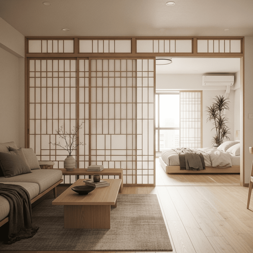 Replacing traditional doors with sliding wooden frames and translucent panels (or reeded glass) to create flexible, light-filled zones.