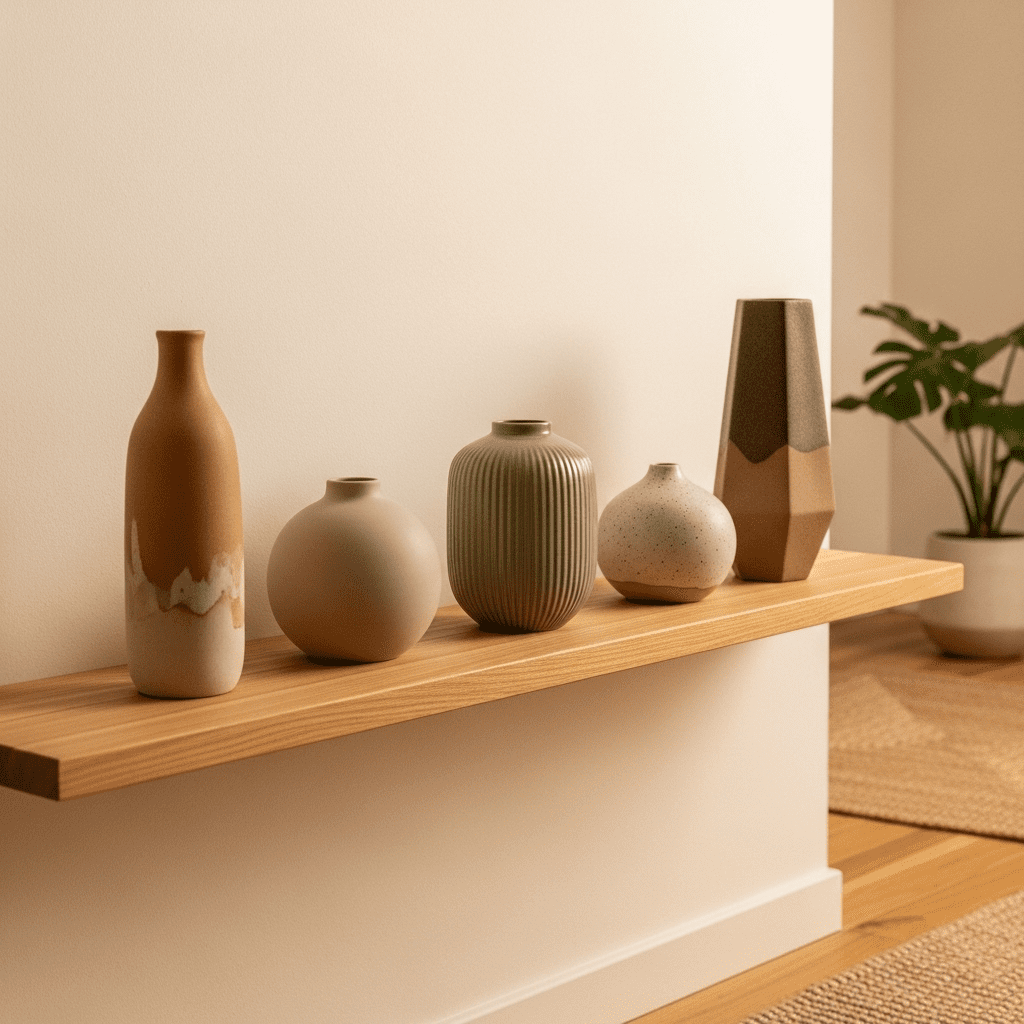 Decorating with handmade, uneven ceramics in earthy glazes to represent the artisanal, hand-crafted spirit of both cultures.