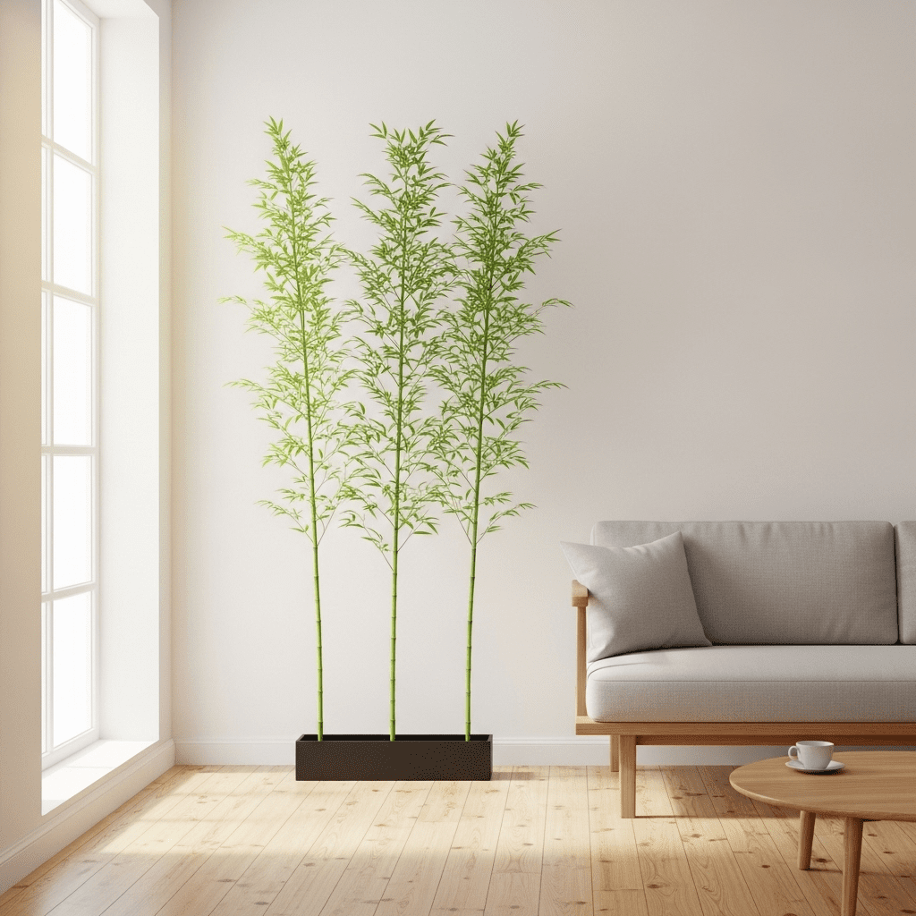Using a few carefully placed, tall stalks of bamboo or horsetail reed in narrow planters to add greenery without the “jungle” chaos.