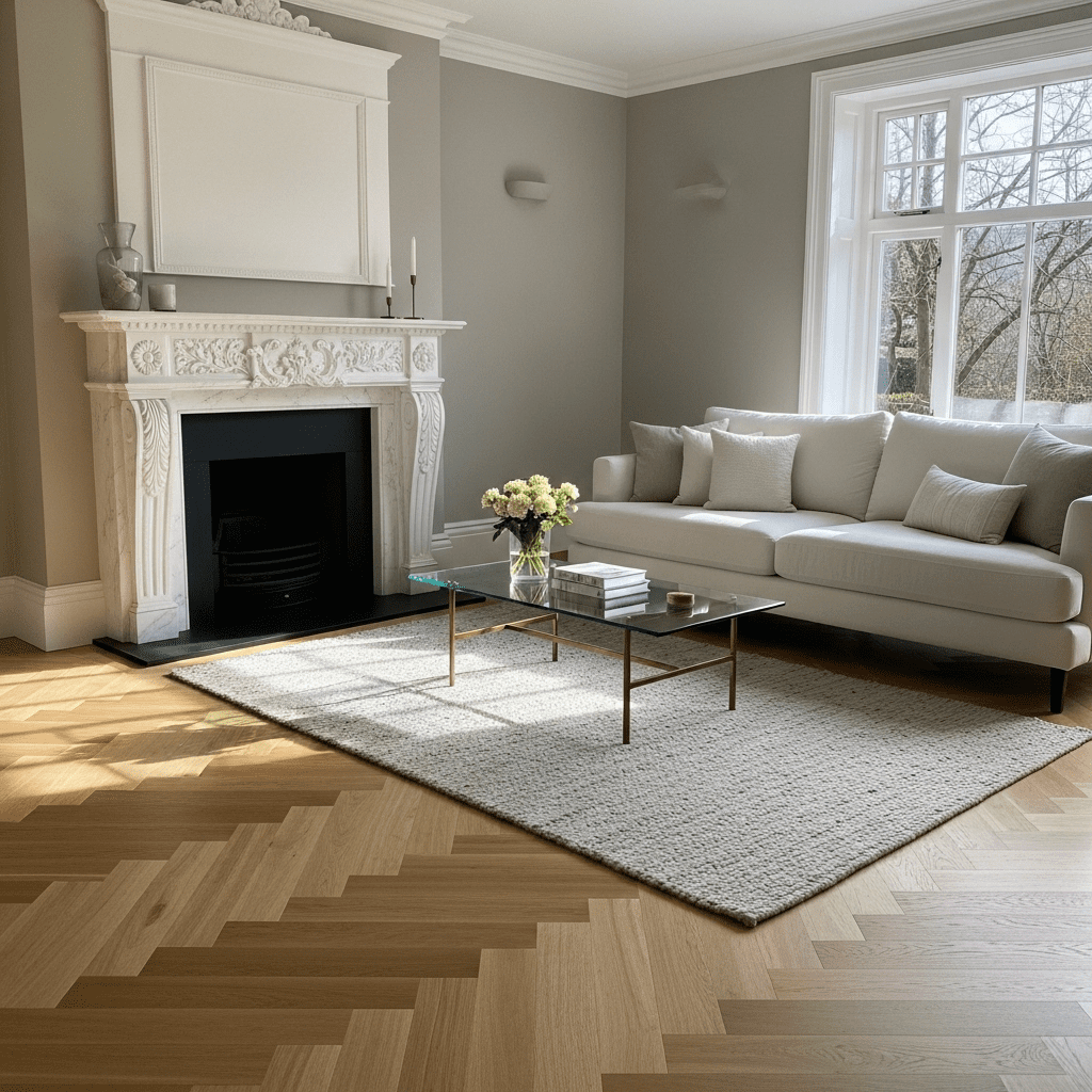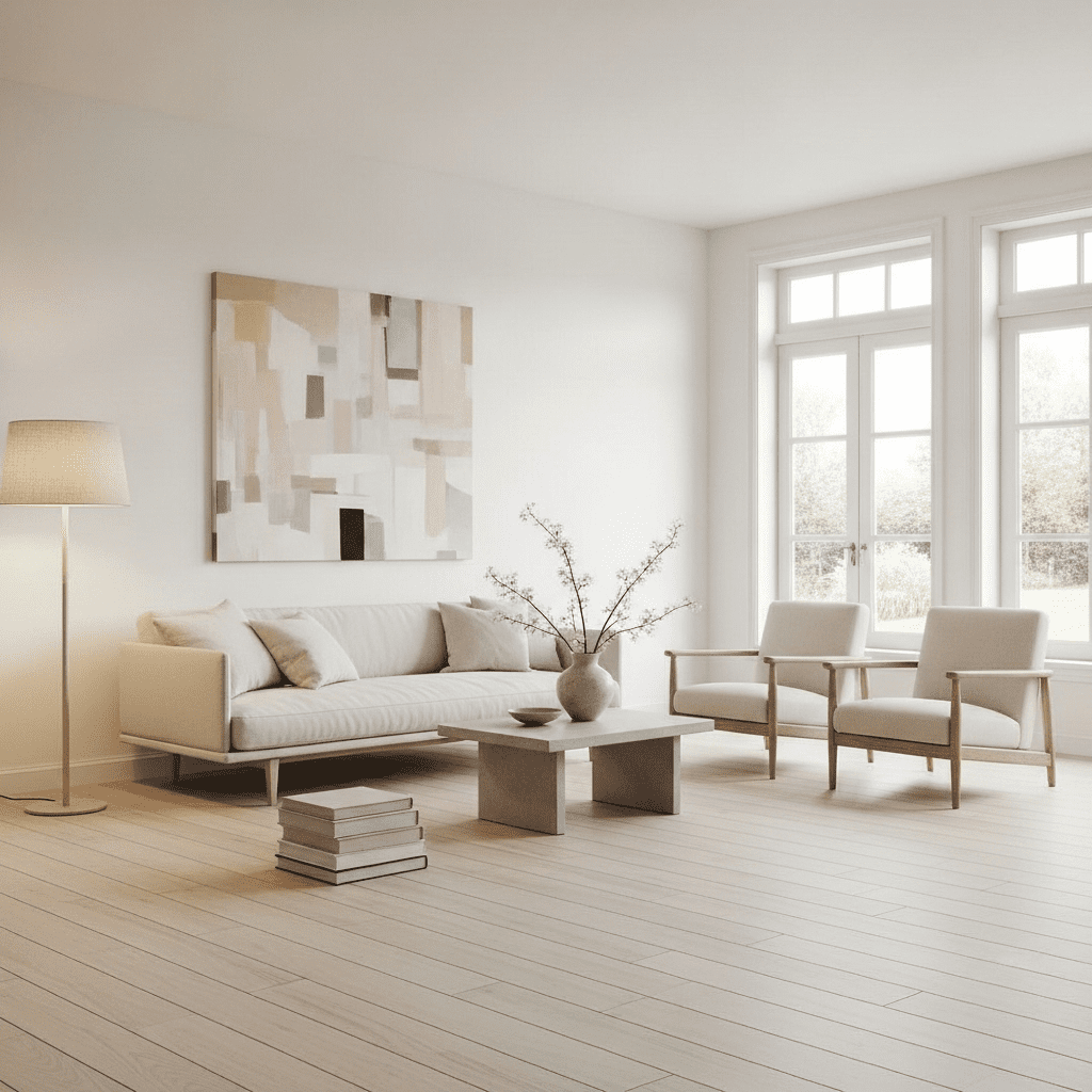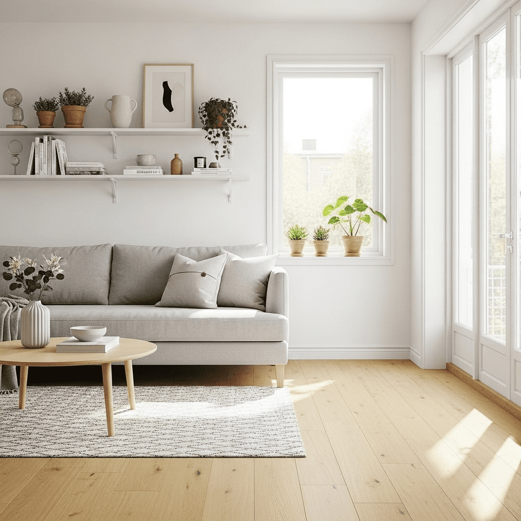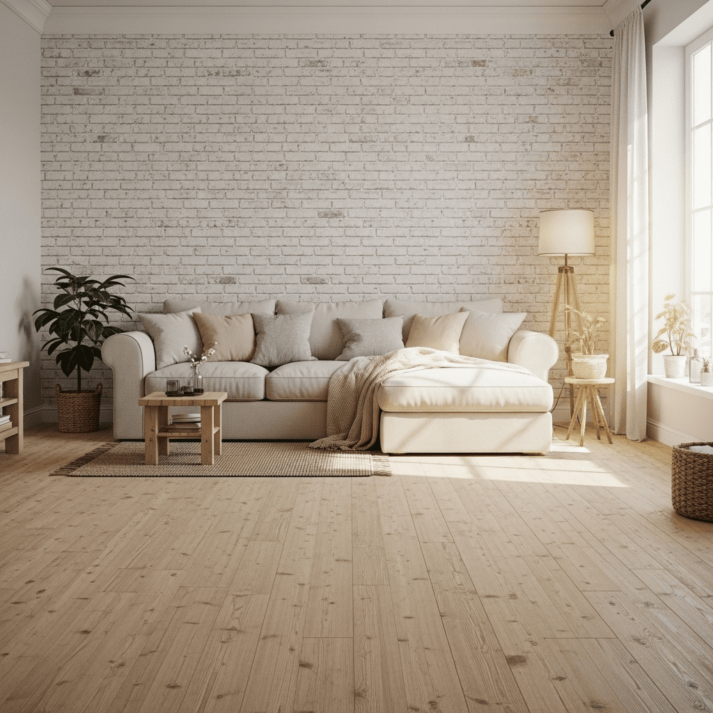 Using “Scandi-bleached” or white-stained hardwood floors to provide a bright foundation for the entire room.
