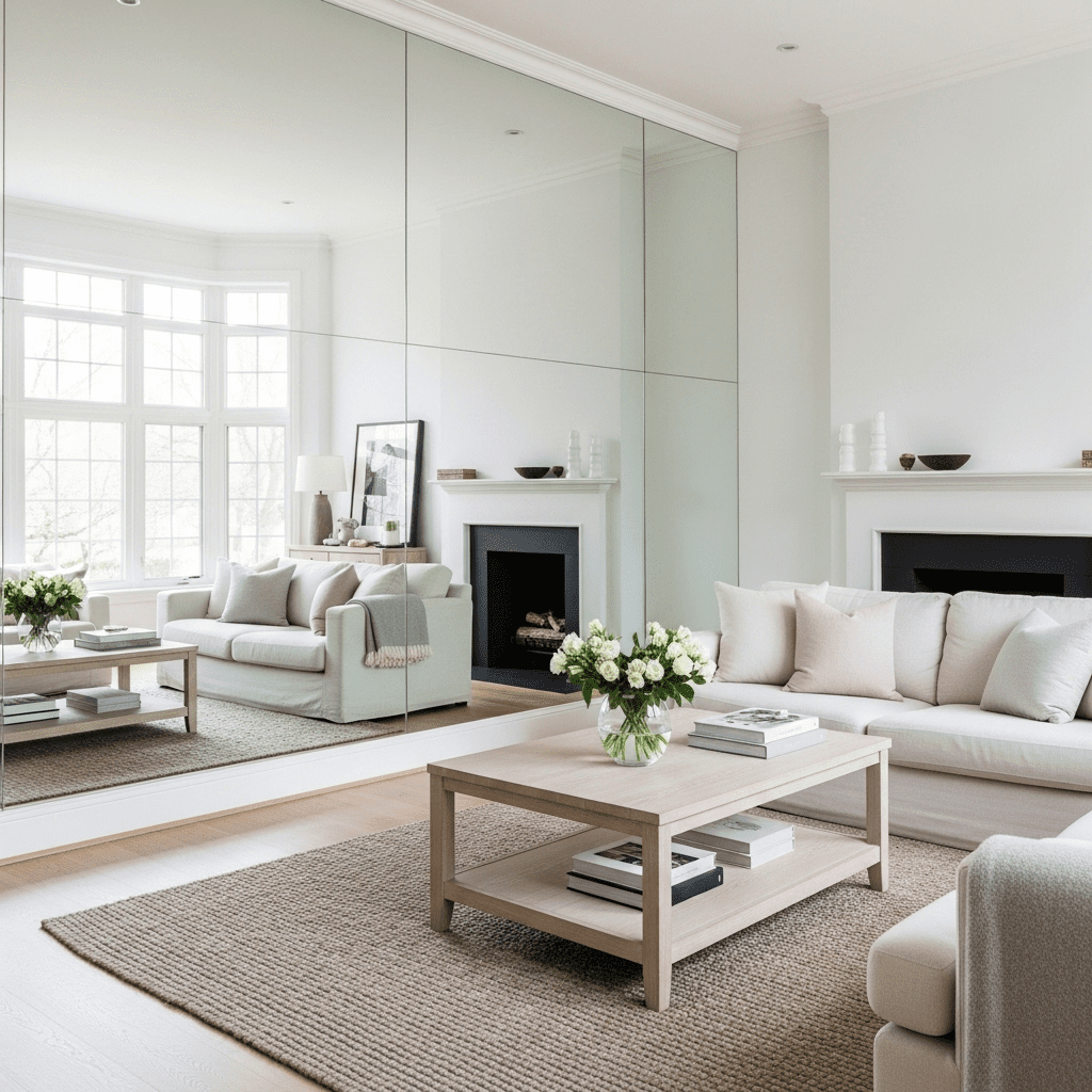 Strategically placing large, oversized mirrors opposite windows to double the amount of natural light entering the room.