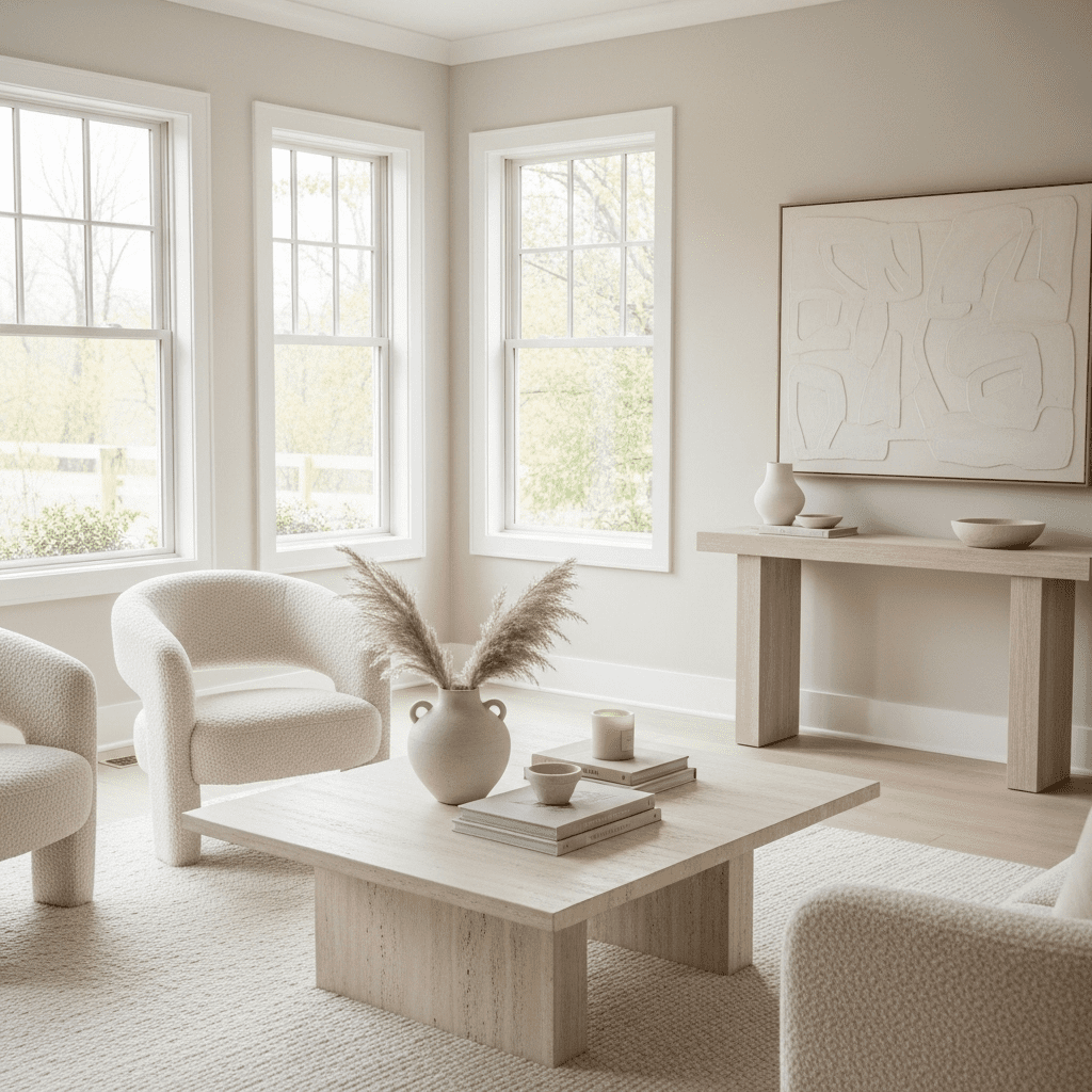 Light living rooms are about the balance between brightness and warmth. By layering different shades of white and cream and focusing on reflective or translucent materials, you can create a space that feels like a breath of fresh air. The key is to avoid “visual weight”—the lighter the furniture looks, the lighter the room feels.