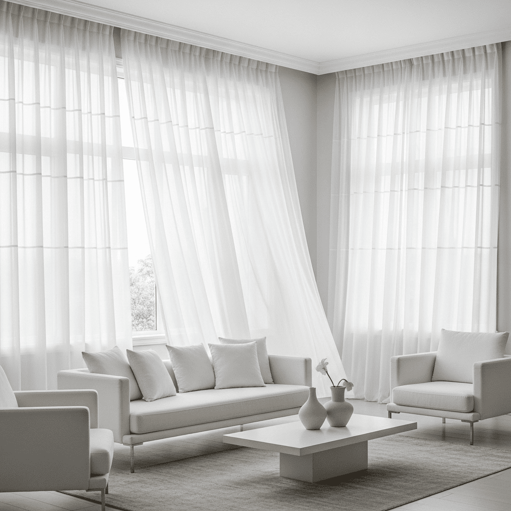 Using multiple layers of translucent white voile or chiffon curtains that catch the light and create a soft, ethereal glow throughout the day.