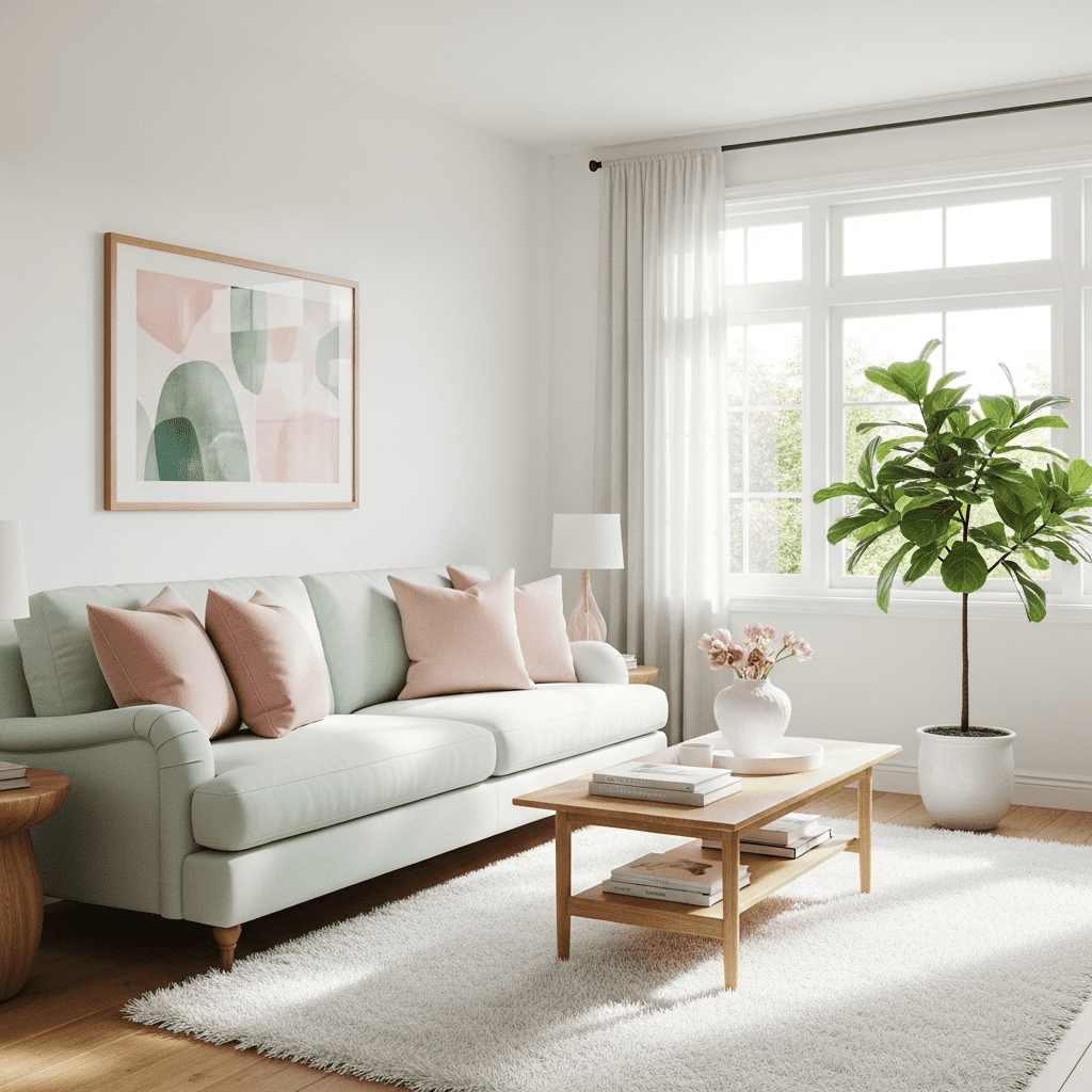 A light-filled room using very pale, “whisper” versions of pink, mint, and lemon to add a touch of color without darkening the space.
