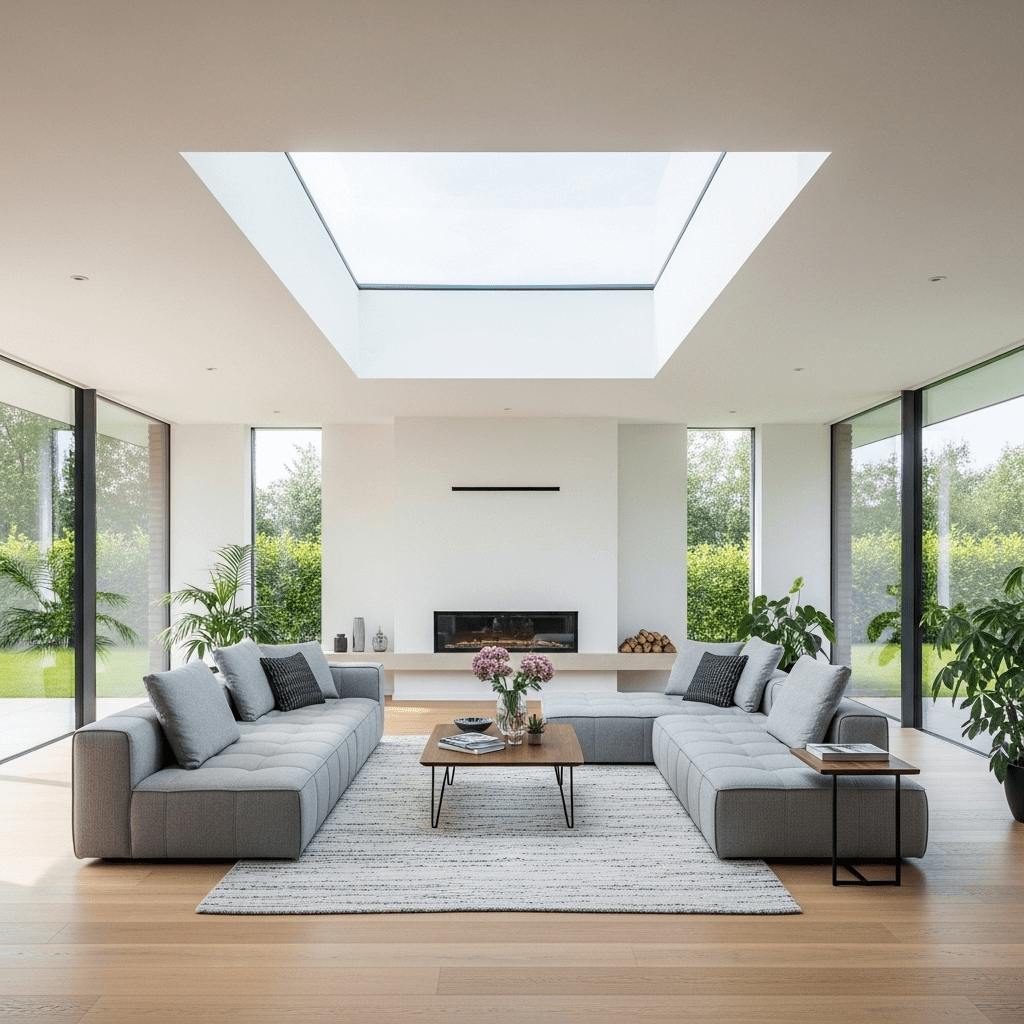 Positioning the main seating area directly under a skylight to capture the peak brightness of the day.