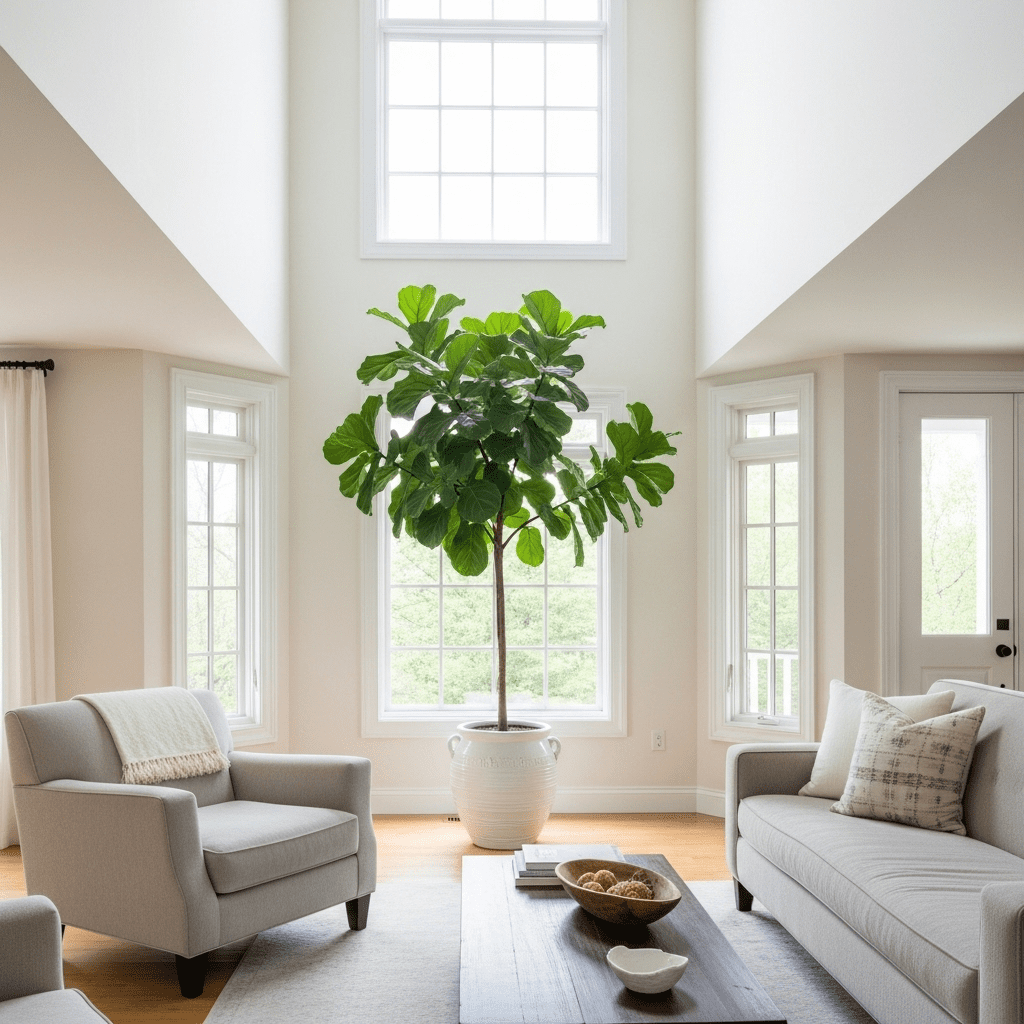 Using one massive, architectural tree—like a Fiddle Leaf Fig or a Bird of Paradise—to anchor a corner and add dramatic height.