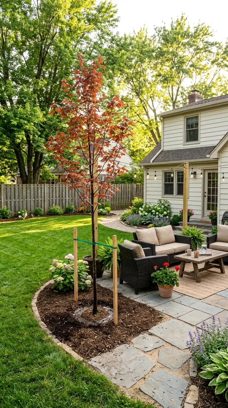 Planting a shade tree is a long-term investment that adds beauty, lowers cooling costs, and creates a natural canopy. Choose a fast-growing native species like red maple, river birch, or oak. Position the tree to shade your patio or deck in the afternoon.