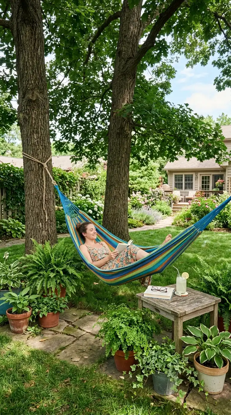 A hammock creates an instant relaxation zone. Hang it between two trees, on a stand, or from a pergola. Add a small side table for books and drinks. A hammock invites rest and adds a casual, leisurely feel to your backyard.
