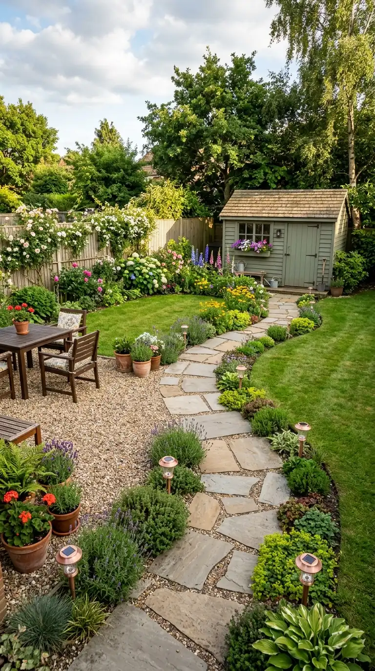 A stone pathway adds structure and charm to your backyard. Use flagstone, pavers, or gravel to create a path that connects different zones—patio to garden, fire pit to dining area. Curve the path for a natural look, and edge with plants or lighting for definition.
