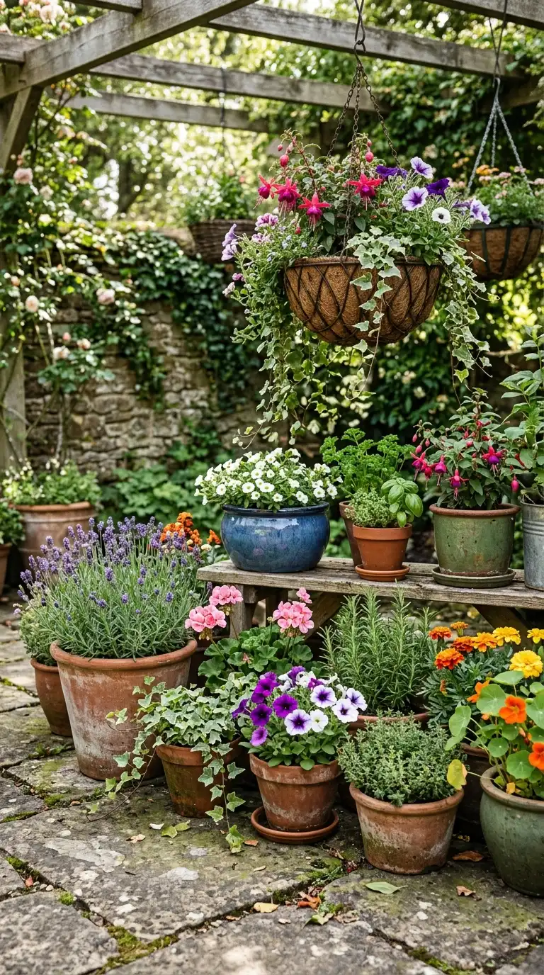 Potted plants are an easy way to add greenery and color to patios, decks, and steps. Use a variety of container sizes, shapes, and materials. Group plants at different heights for visual interest. Choose a cohesive color palette for a polished look.