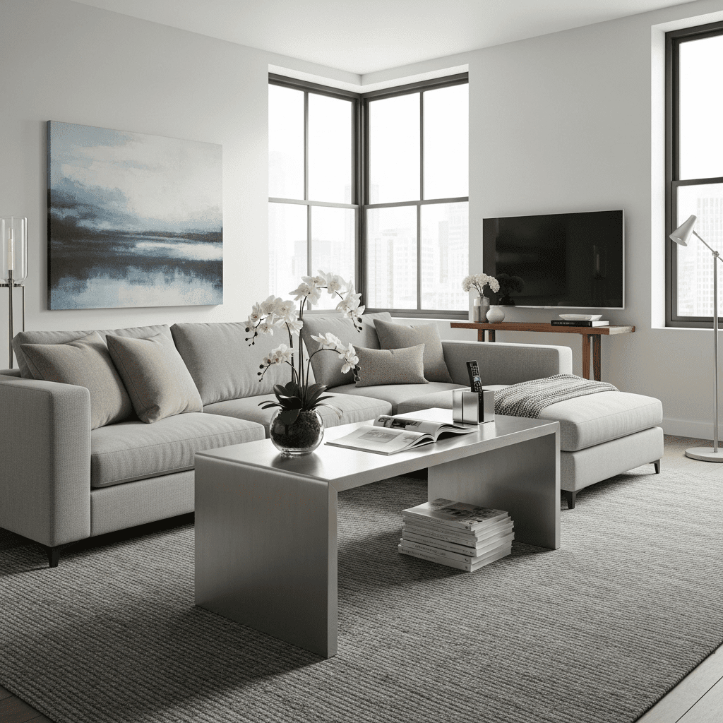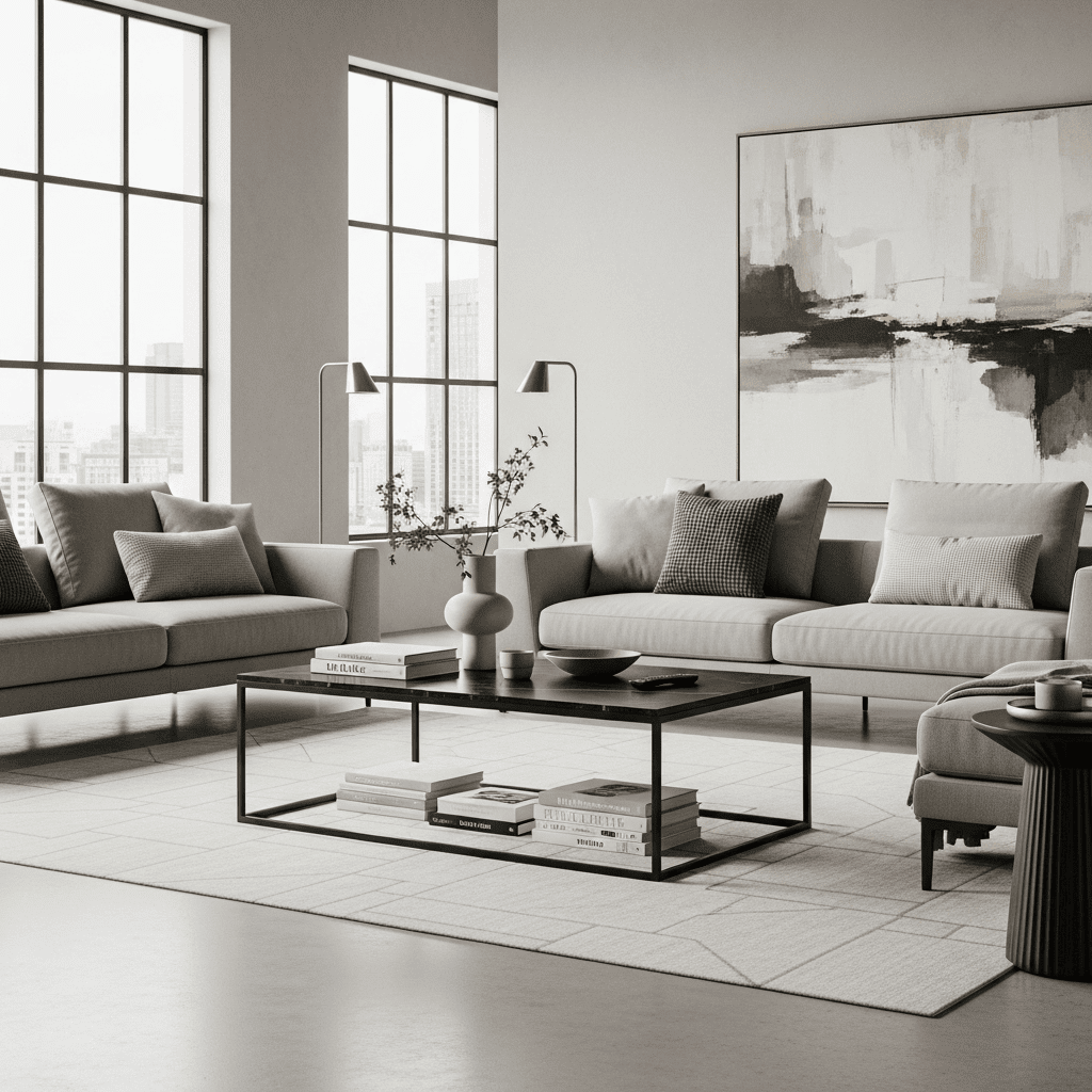 1. Monochromatic Concrete Cube: A raw, architectural piece that adds an urban edge to the room.
