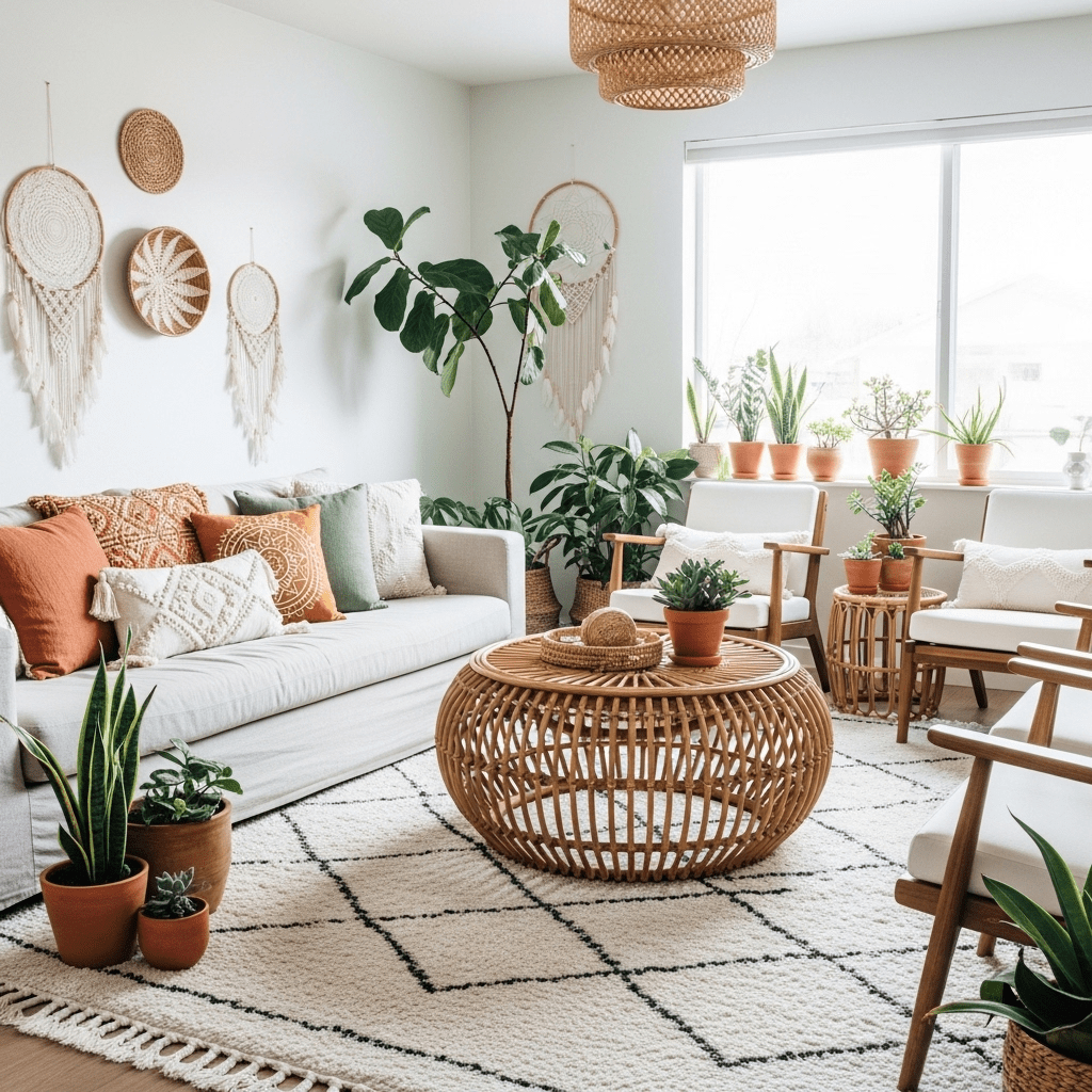 1. Woven Rattan Drum: A lightweight, textured piece perfect for coastal or boho styles.