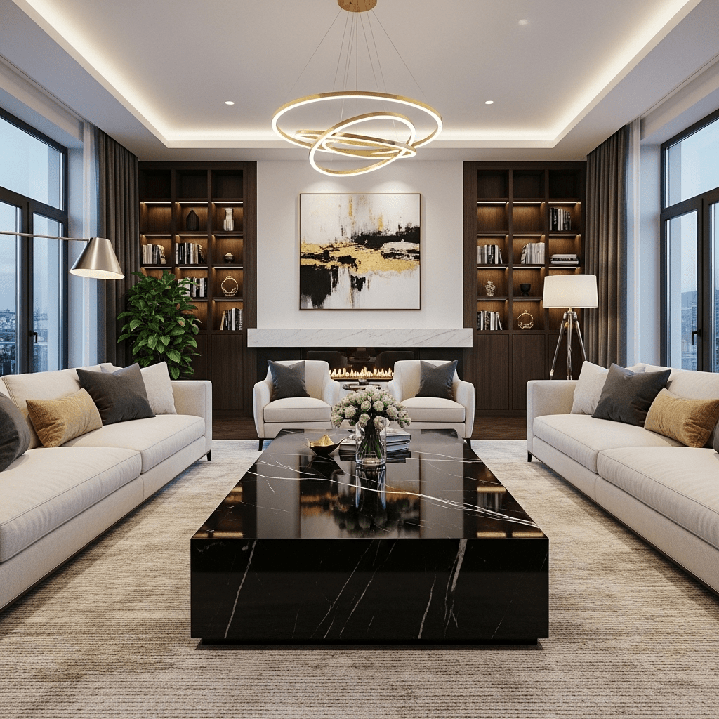 Selecting the right center table for living room ideas is about balancing the height of your sofa cushions with the diameter of the table—usually aiming for a height that is within 1-2 inches of your seating. If your room is full of sharp-edged furniture, a round or organic pebble shape will soften the space. If you have a large sectional, a solid rectangular block or a modular set will fill the “void” and provide every seat with a functional surface. Focus on the material that offers the best contrast to your flooring to ensure your center table truly stands out.